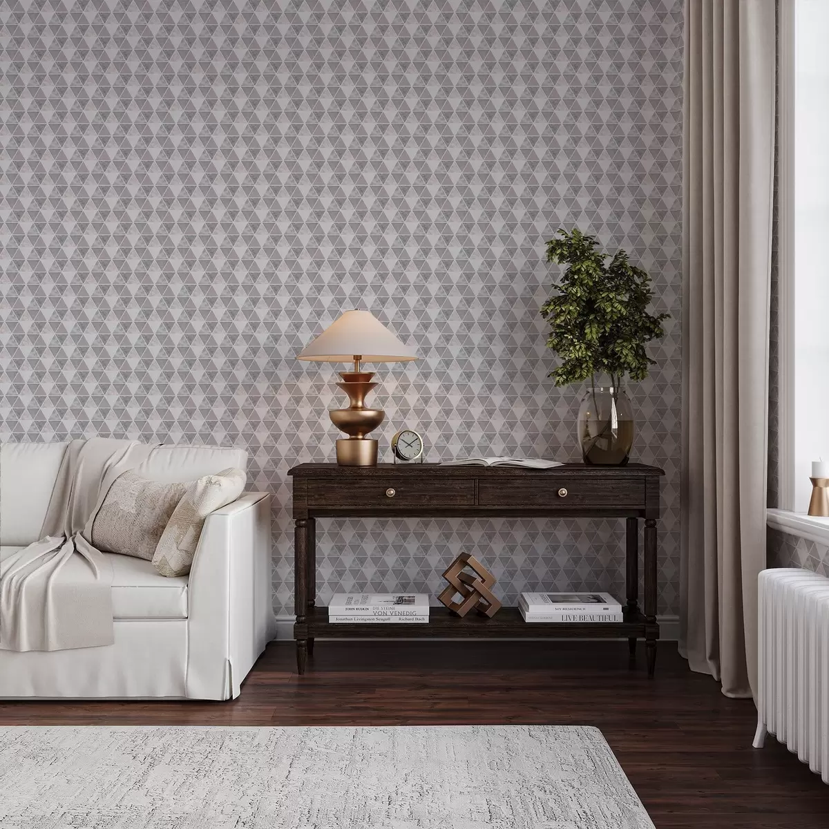 Tapet Geometriskt triangelmönster i gråa och pudriga toner Nr. a00920