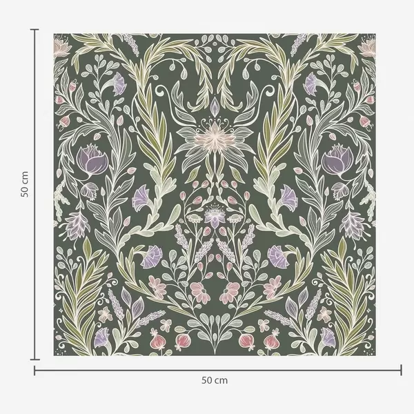 Tapet Symmetriskt blommönster på mörkgrön bakgrund Nr. a00928