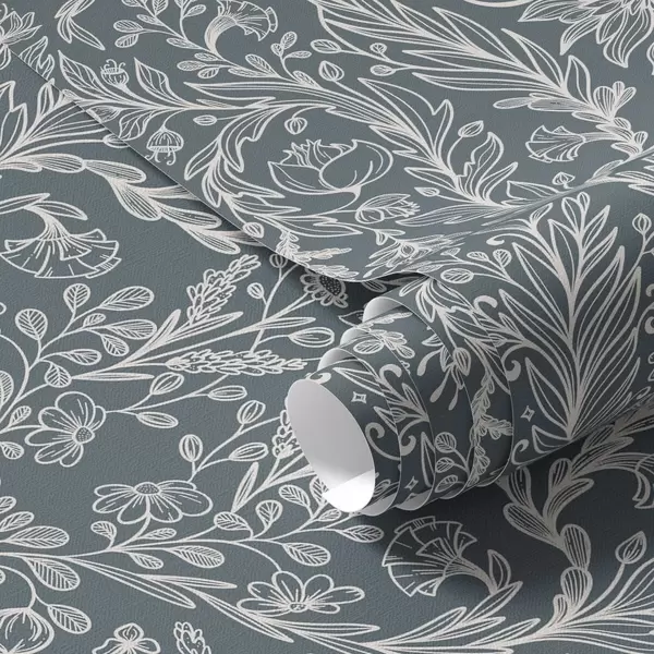 Tapet Linjärt blommönster på blågrå bakgrund Nr. a00929v1