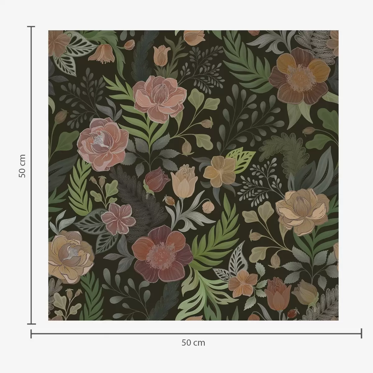 Tapet Rika blommor och grönska på en djup mörk bakgrund Nr. a00932