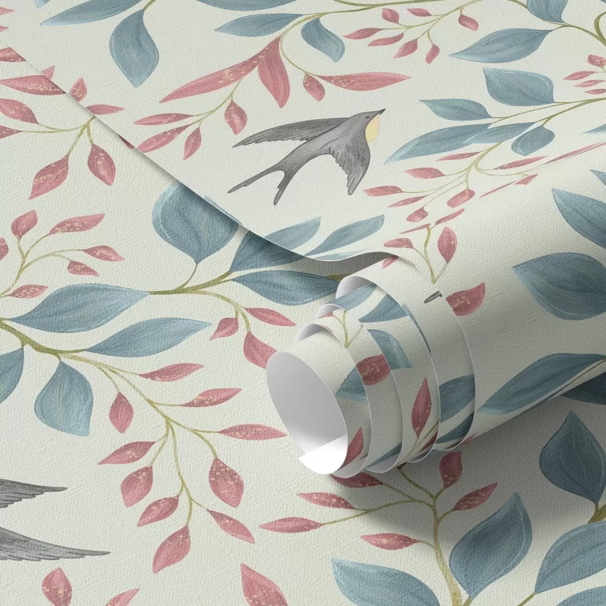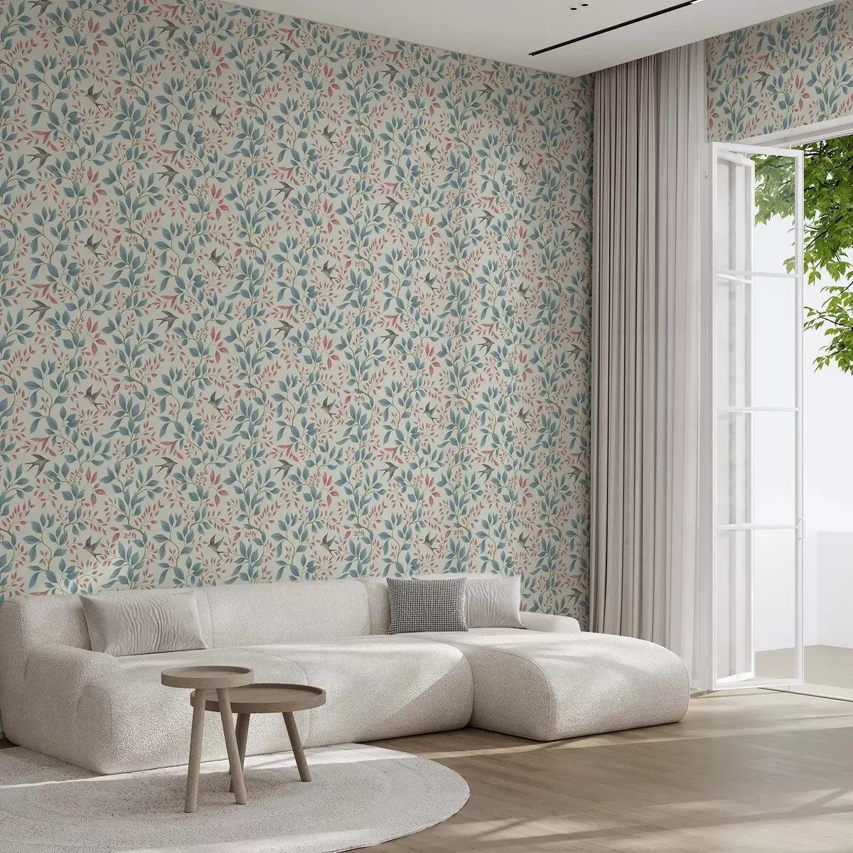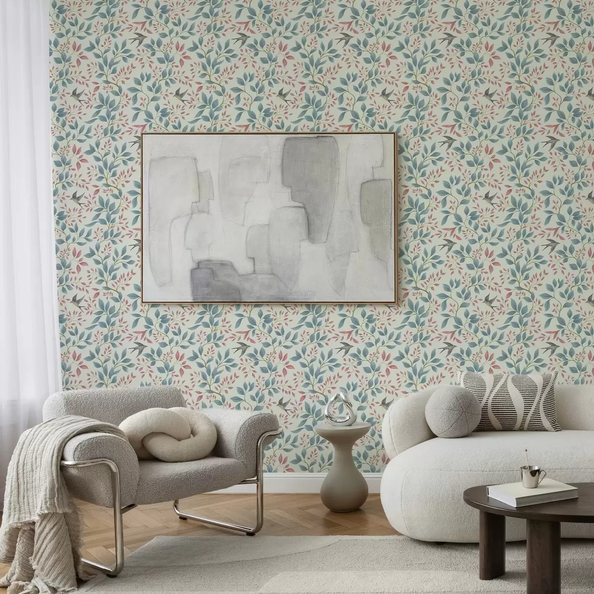 Tapet Luftiga grenar och fåglar på en ljus mintgrön bakgrund Nr. a00933v1