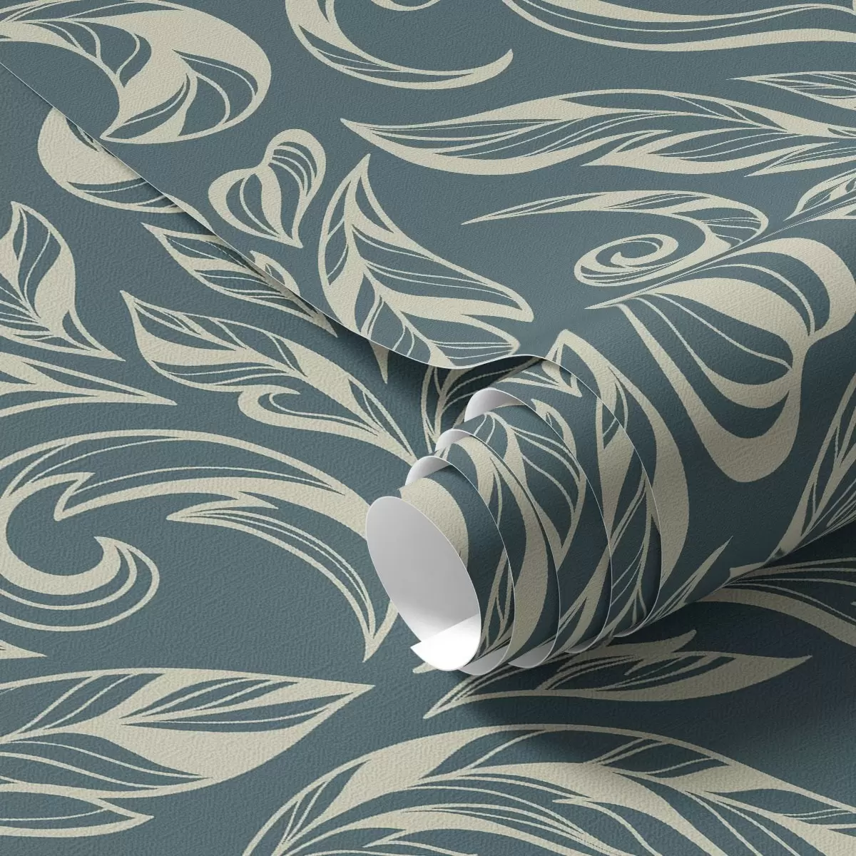 Tapet Bladmönster av ljusa linjer på en blågrå bakgrund Nr. a00940