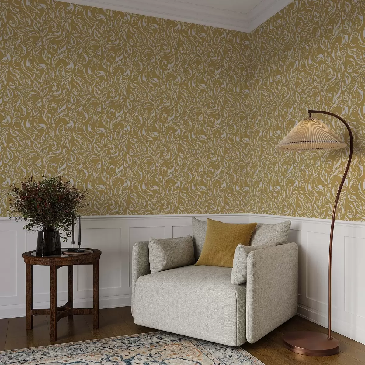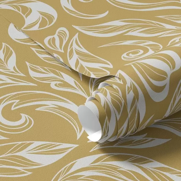 Tapet Krämvitt bladornament på en varm ockrafärgad bakgrund Nr. a00940v1
