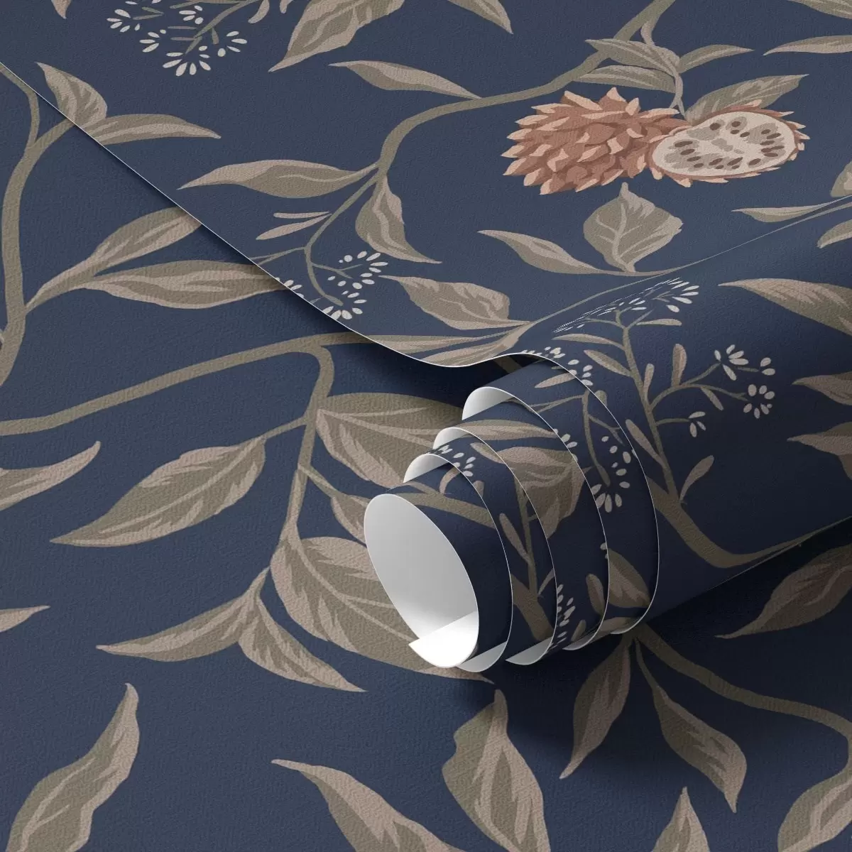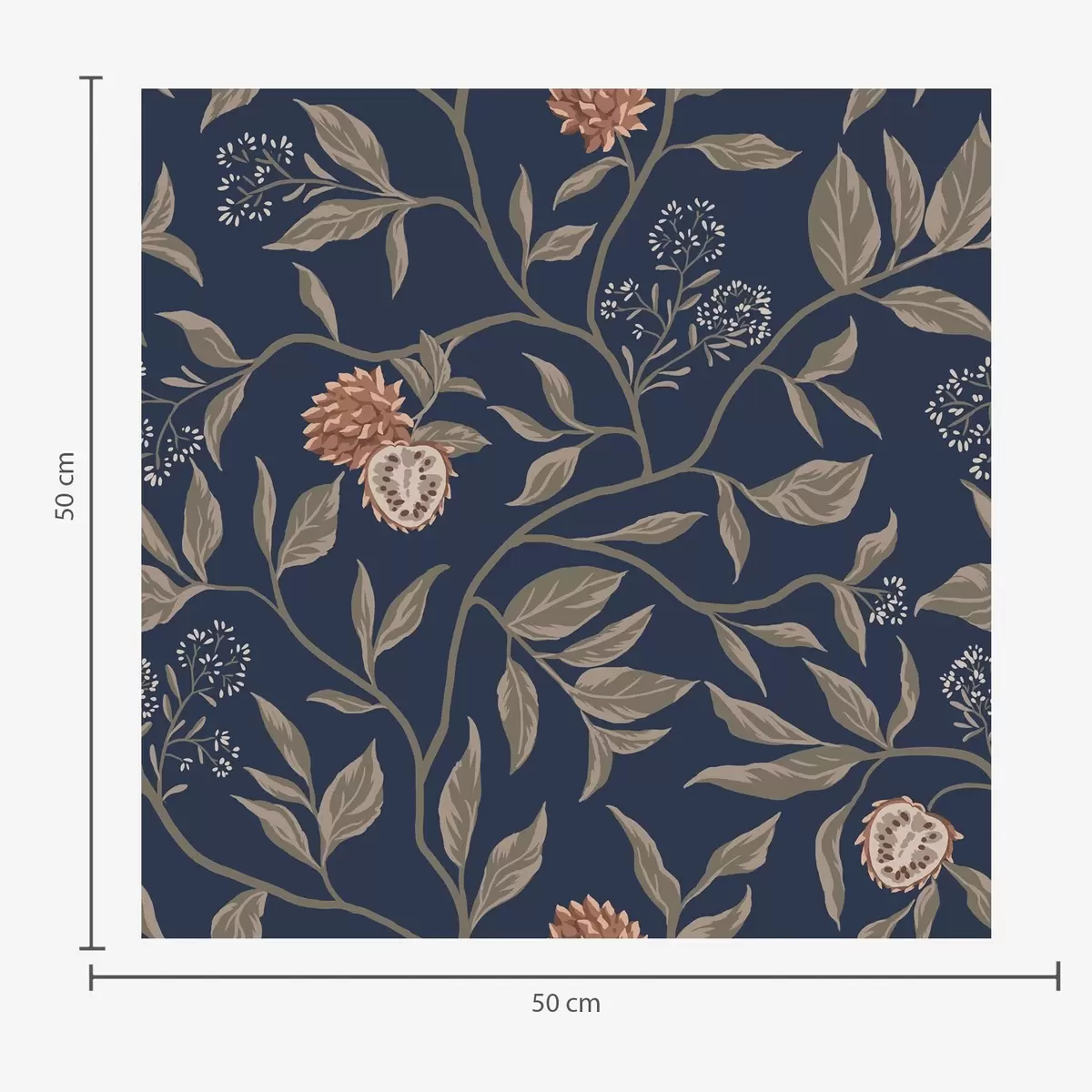 Tapet Blå trädgård med grenar, frukter och små blommor Nr. a00959