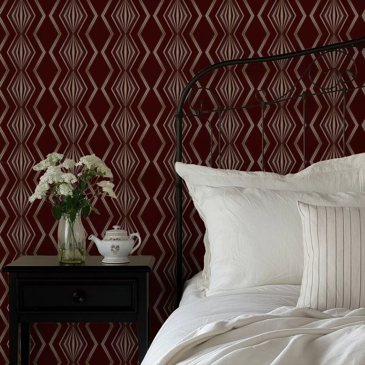 Tapet Bourgognefärgad bakgrund med rytmiska romber och sicksacklinjer Nr. a00974