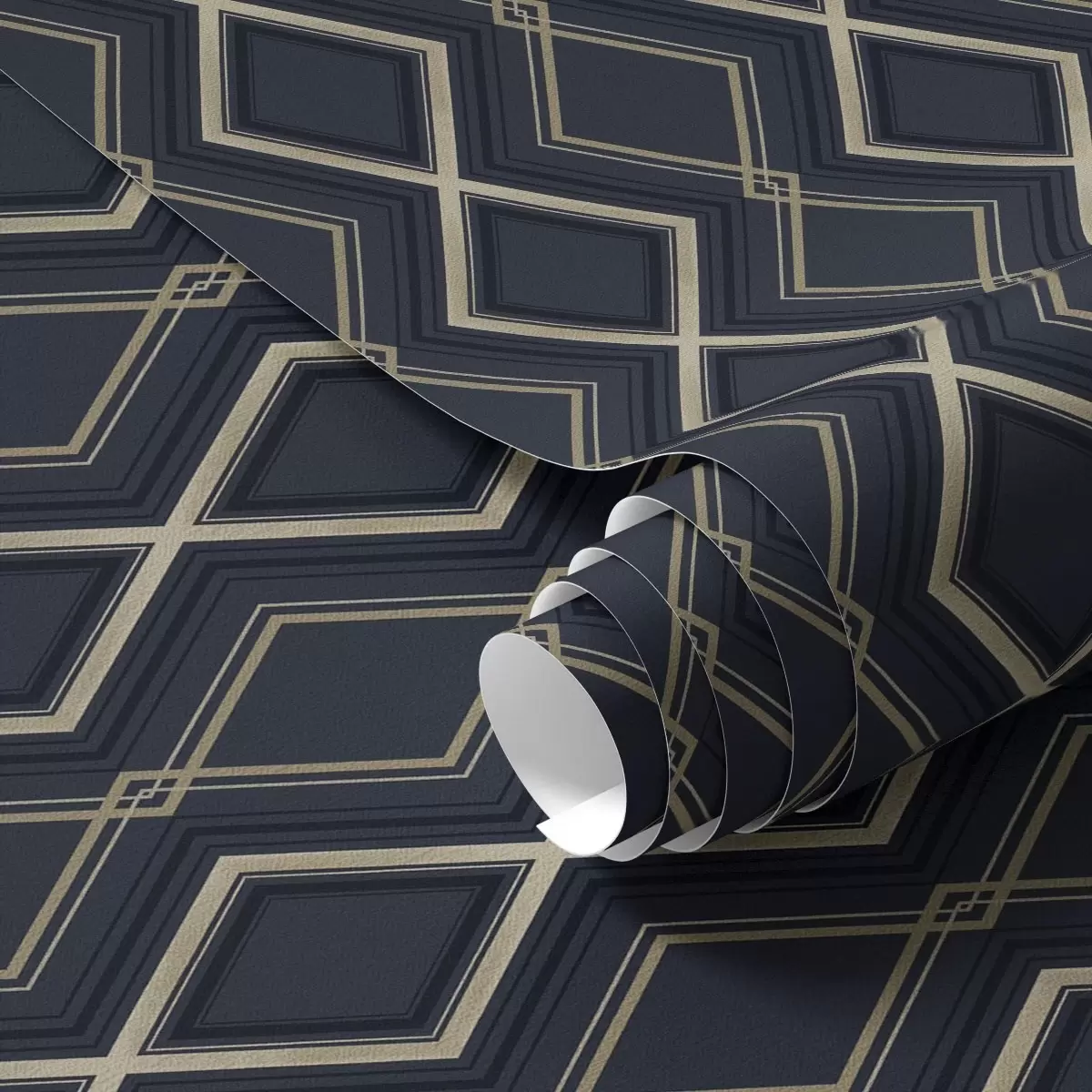 Tapet Mörkblå diamantrutnät med tunna ljusa linjer Nr. a00975