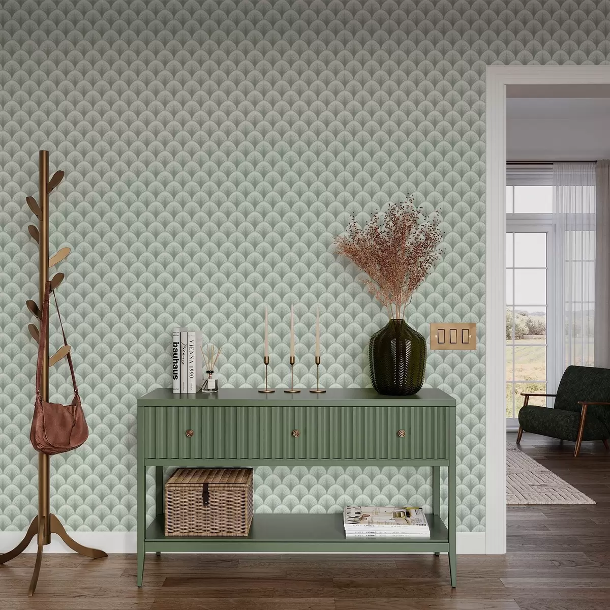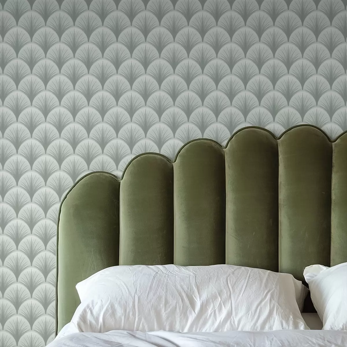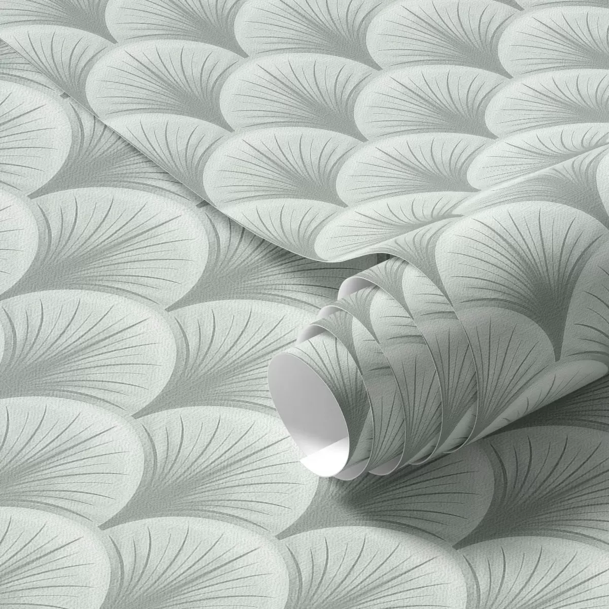 Tapet Mintfärgade fläktbågar med strålar på en mjuk grönaktig bakgrund Nr. a00978v2