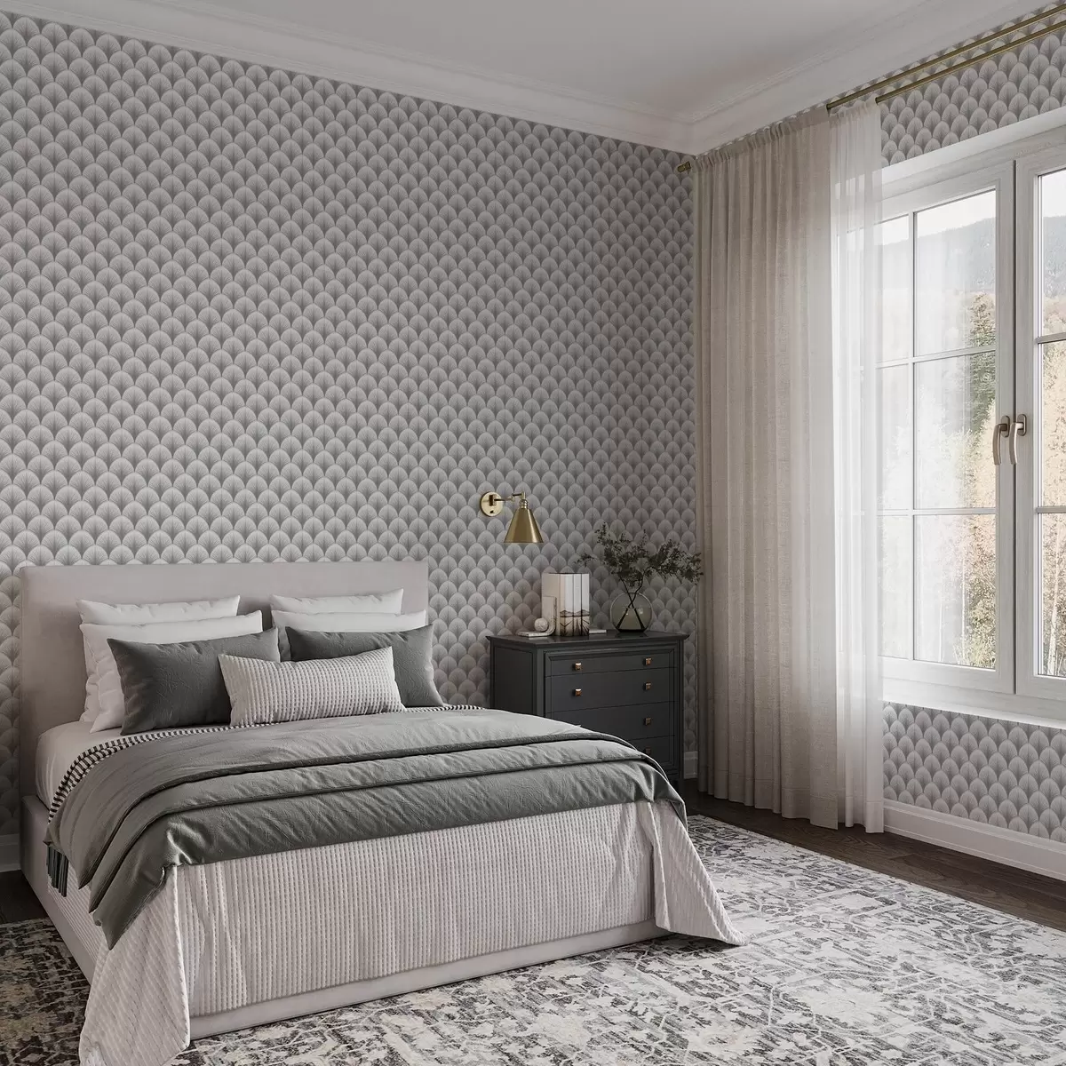 Tapet Kontrasterande grå fläktbågar på vit bakgrund Nr. a00978v4
