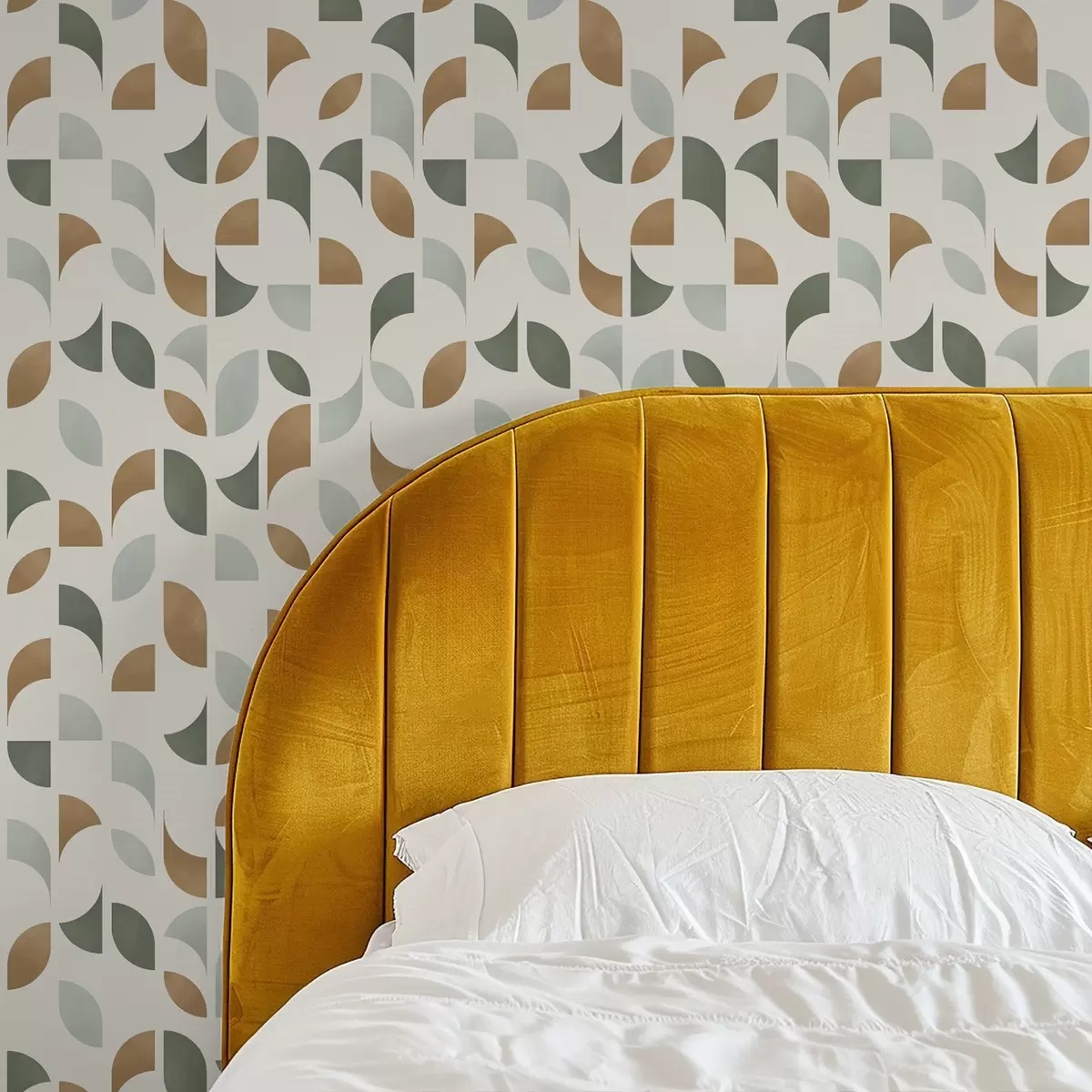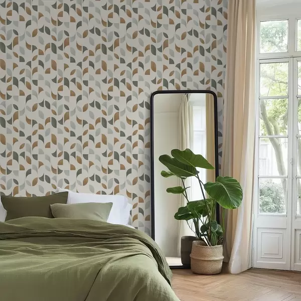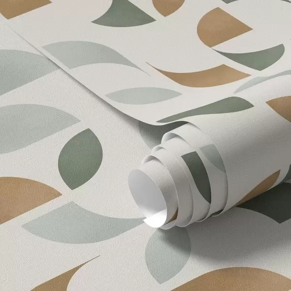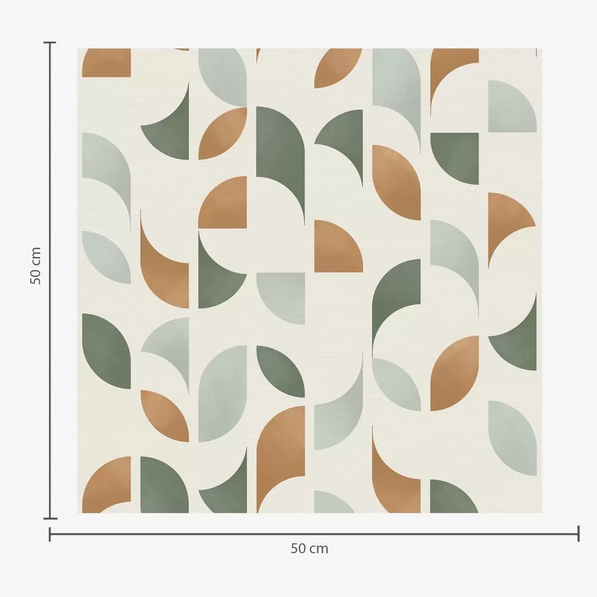 Tapet Abstrakta halvcirklar och blad i grönt och terrakotta Nr. a00985