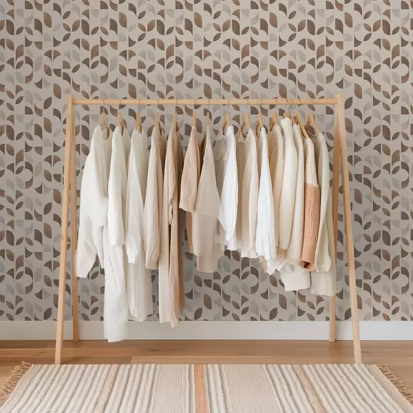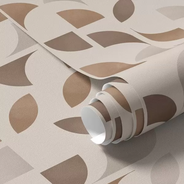 Tapet Rytm av halvcirklar och blad i varma karamellbruna toner Nr. a00986v1