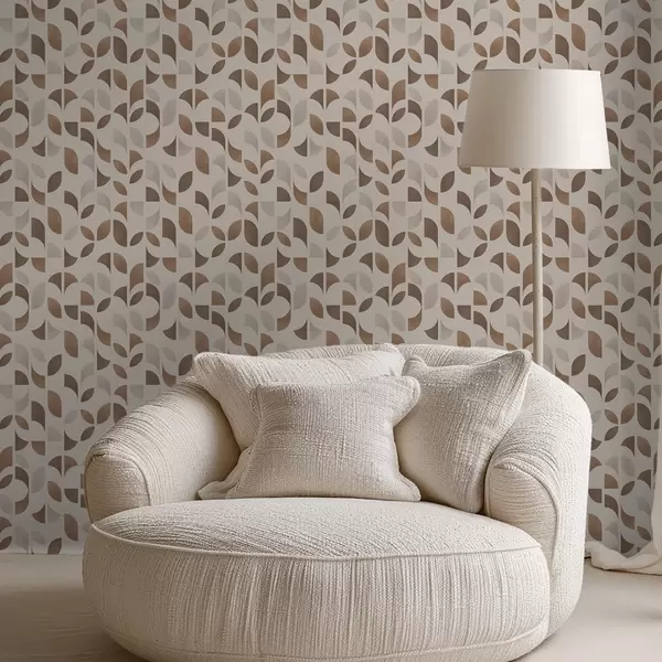 Tapet Rytm av halvcirklar och blad i varma karamellbruna toner Nr. a00986v1