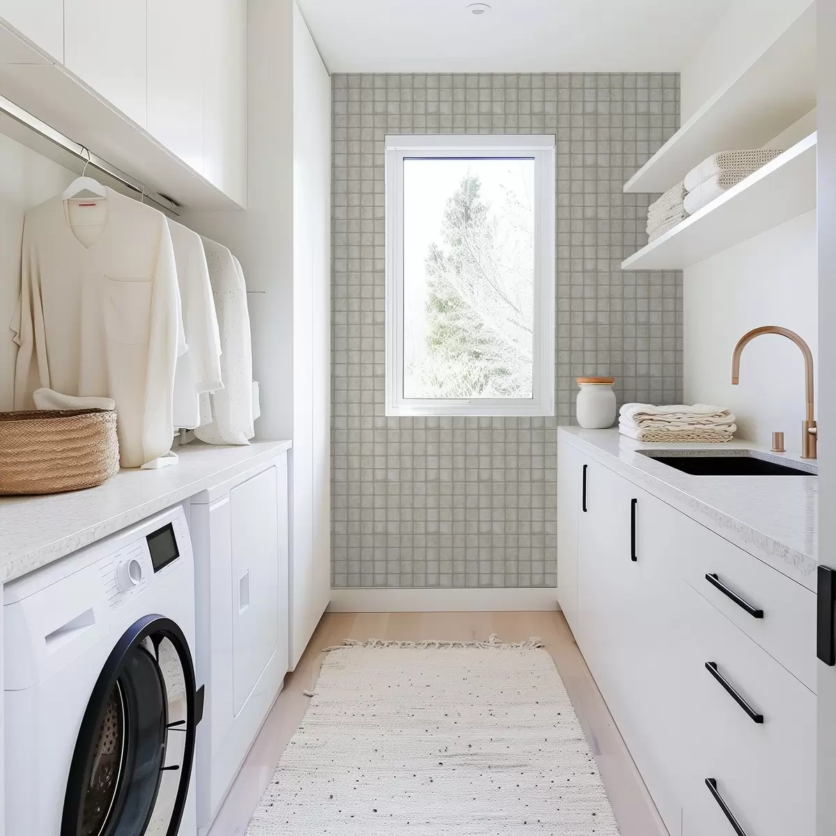 Tapet Imitation av fyrkantiga kakelplattor i en mjuk grågrön färgskala Nr. a00988