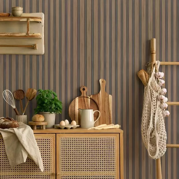 Tapet Vertikala träribbor med mörkgrå insatser Nr. a00991