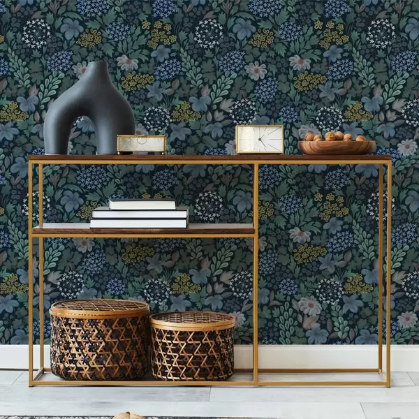 Tapet Nattens trädgård med blå liljor, bär och vild grönska Nr. a00996