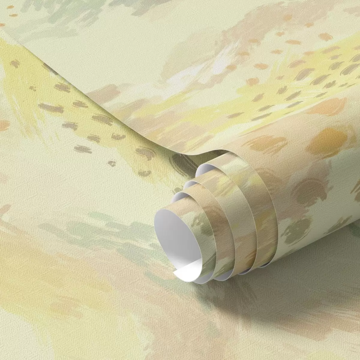 Tapet Pastellfärgade penseldrag i en varm, krämig gul palett Nr. a00999v1