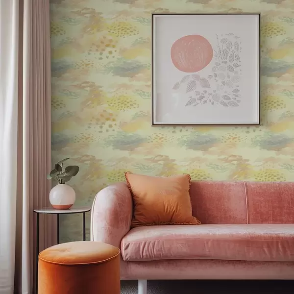 Tapet Pastellfärgade penseldrag i en varm, krämig gul palett Nr. a00999v1
