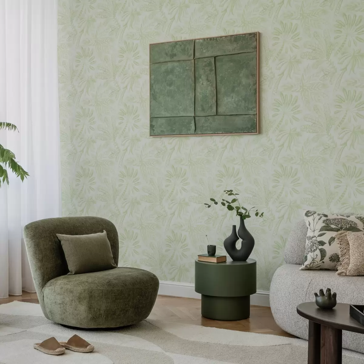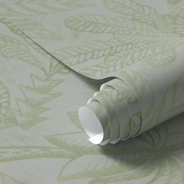 Tapet Skissade tropiska blad i fräscha ljusgröna toner Nr. a01001v1