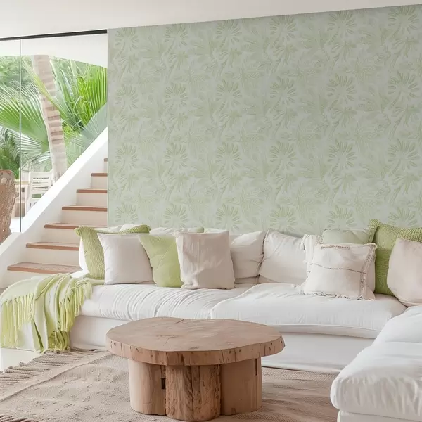 Tapet Skissade tropiska blad i fräscha ljusgröna toner Nr. a01001v1