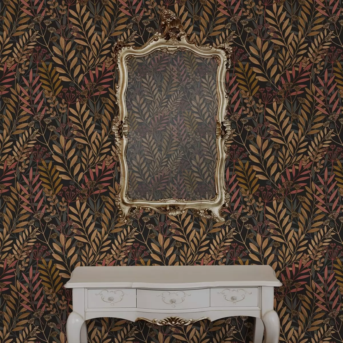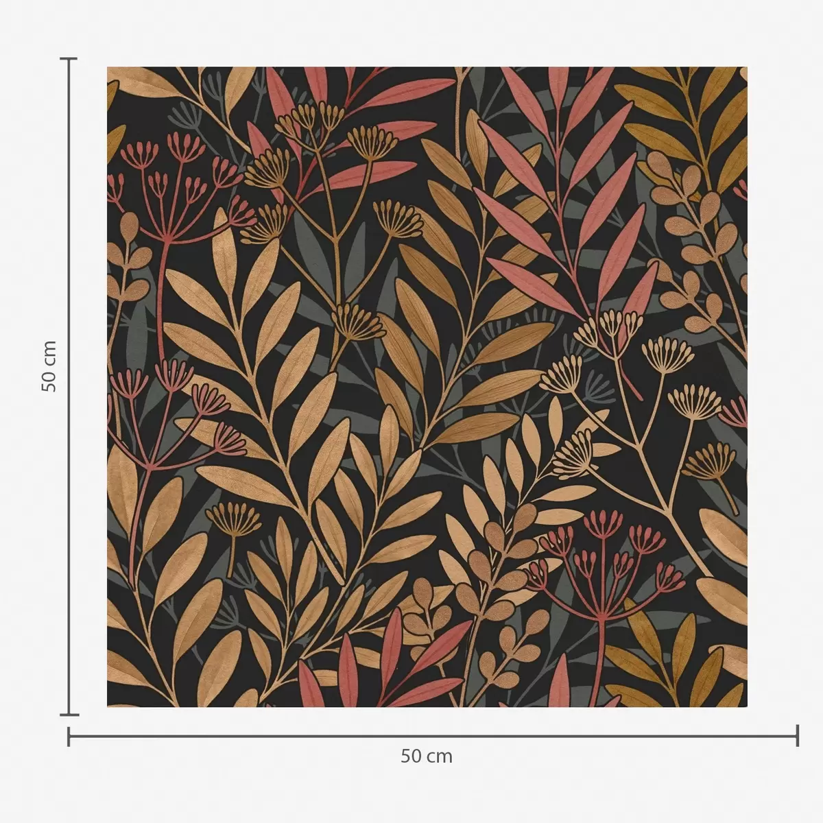 Tapet Mörk äng med stiliserade blad och frökapslar Nr. a01020