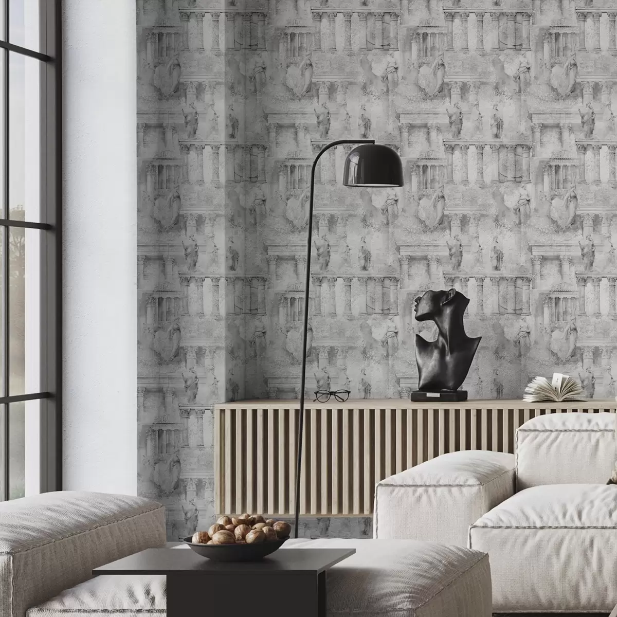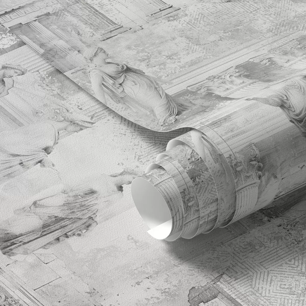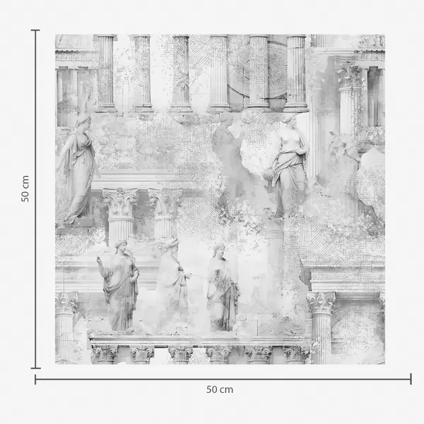 Tapet Klassiska statyer och pelare i bleka grå nyanser Nr. a01041v1