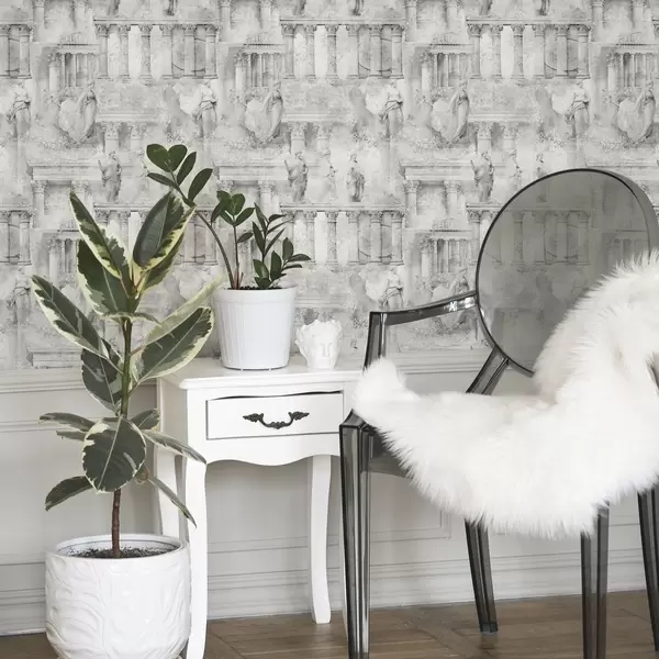 Tapet Klassiska statyer och pelare i bleka grå nyanser Nr. a01041v1