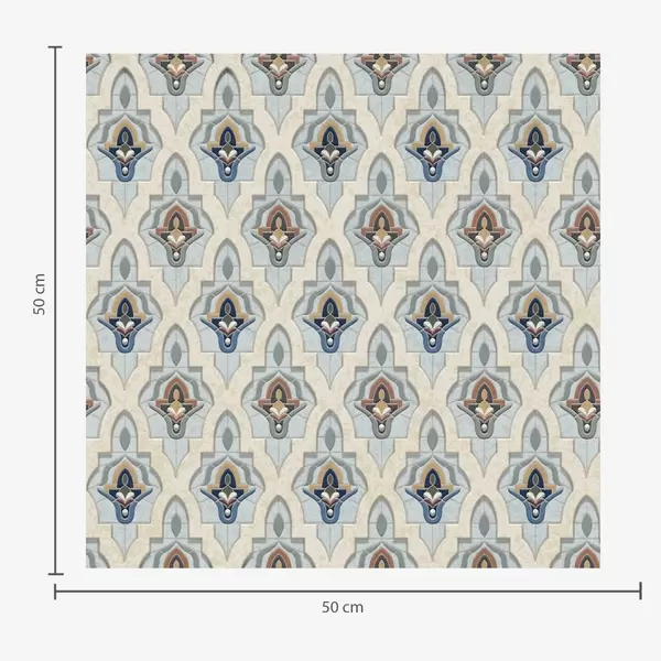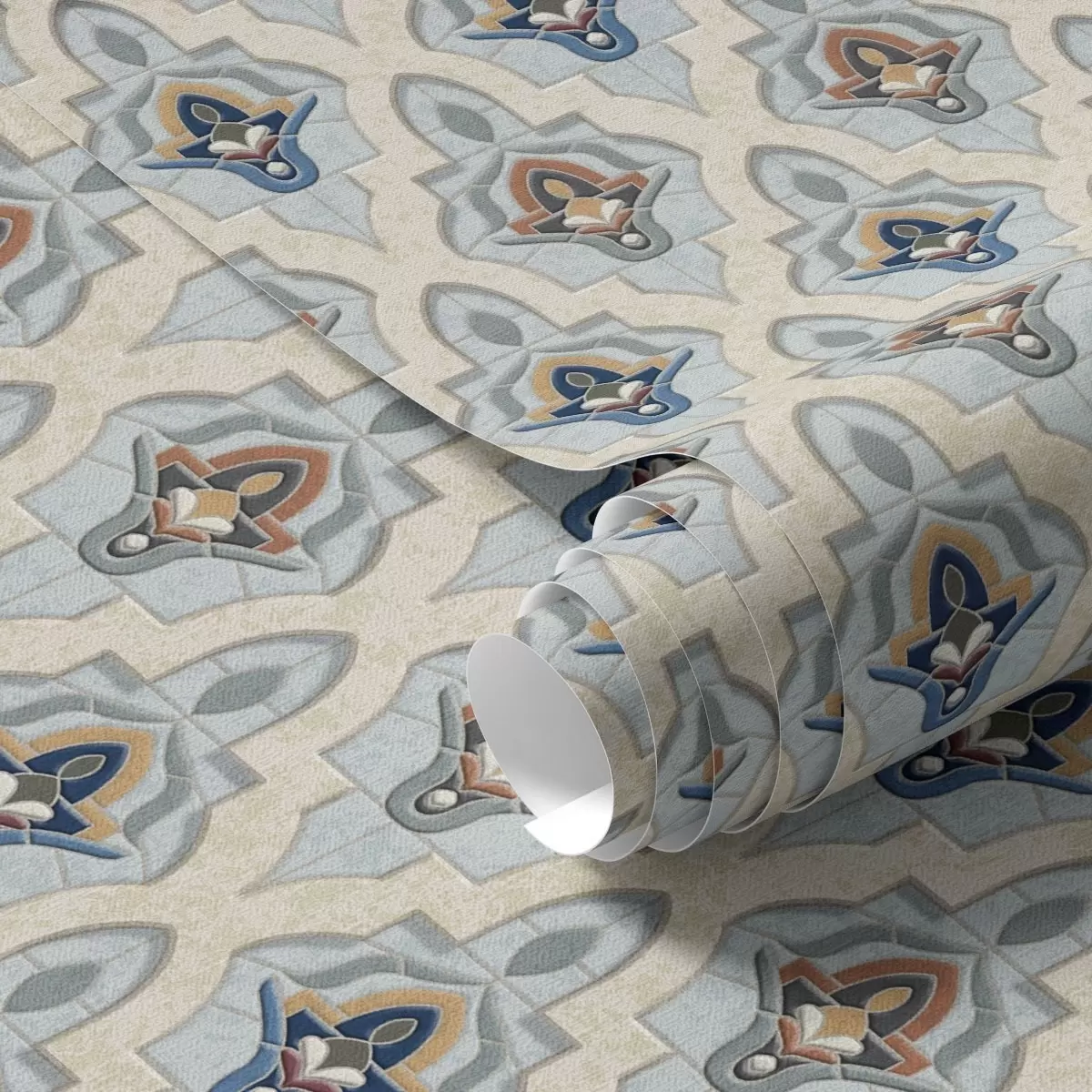Tapet Orientaliskt mönster av små kakelplattor i en blå-sandfärgad palett Nr. a01044