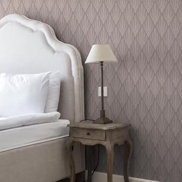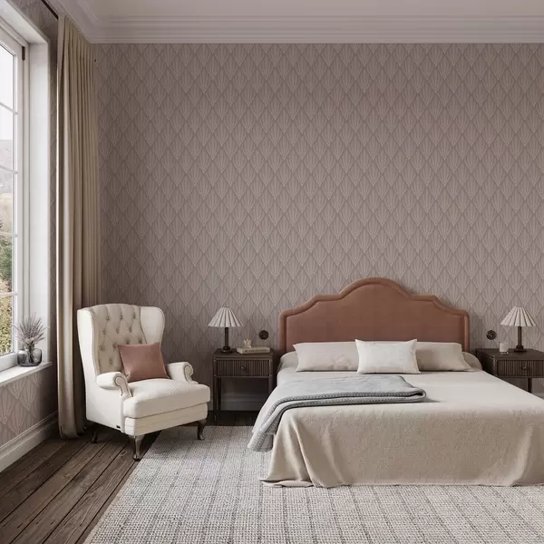 Tapet Puderbeige Art Deco med mjuka fläktar Nr. a01064v1
