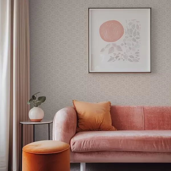 Tapet Varm beige bakgrund med fina grafiska kuber Nr. a01067v3