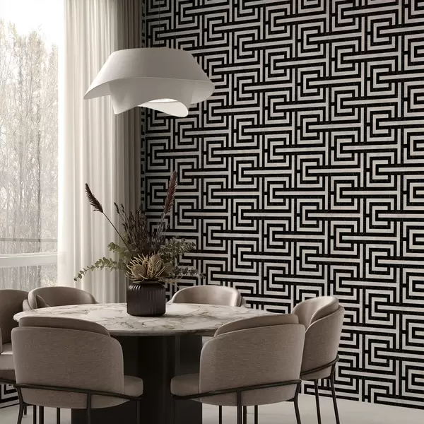 Tapet Svartvitt geometriskt labyrintmönster Nr. a01073