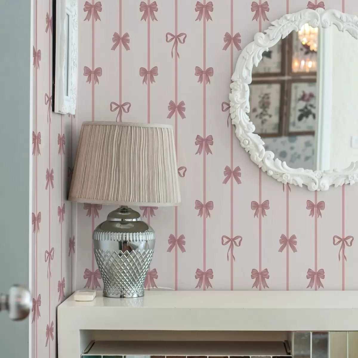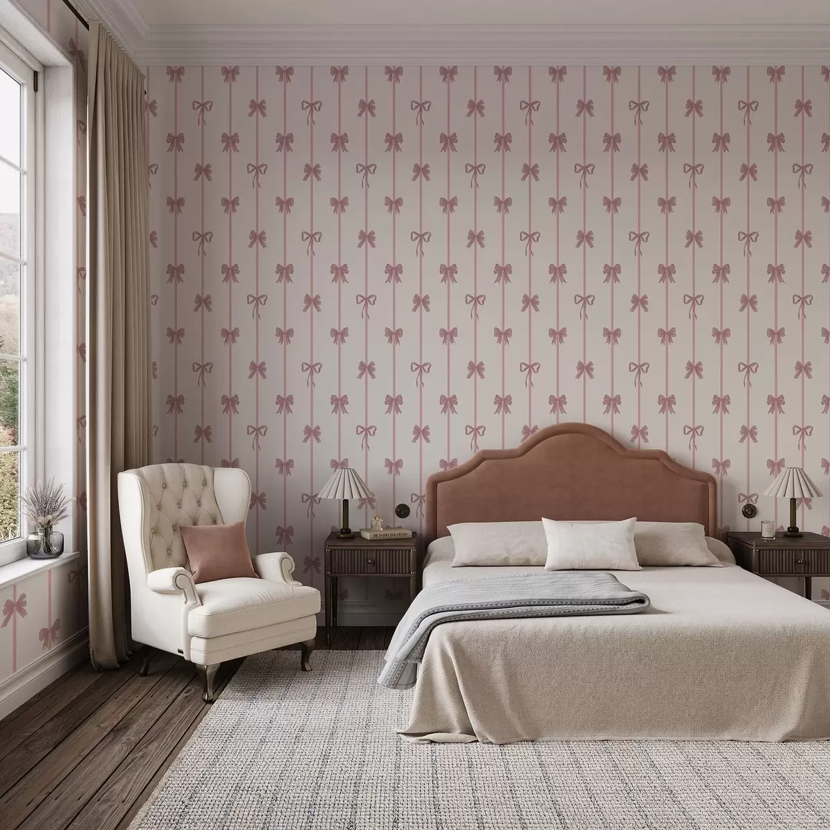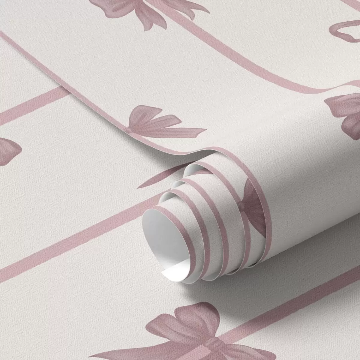 Tapet Rosa rosetter med band på ljus bakgrund Nr. a01074