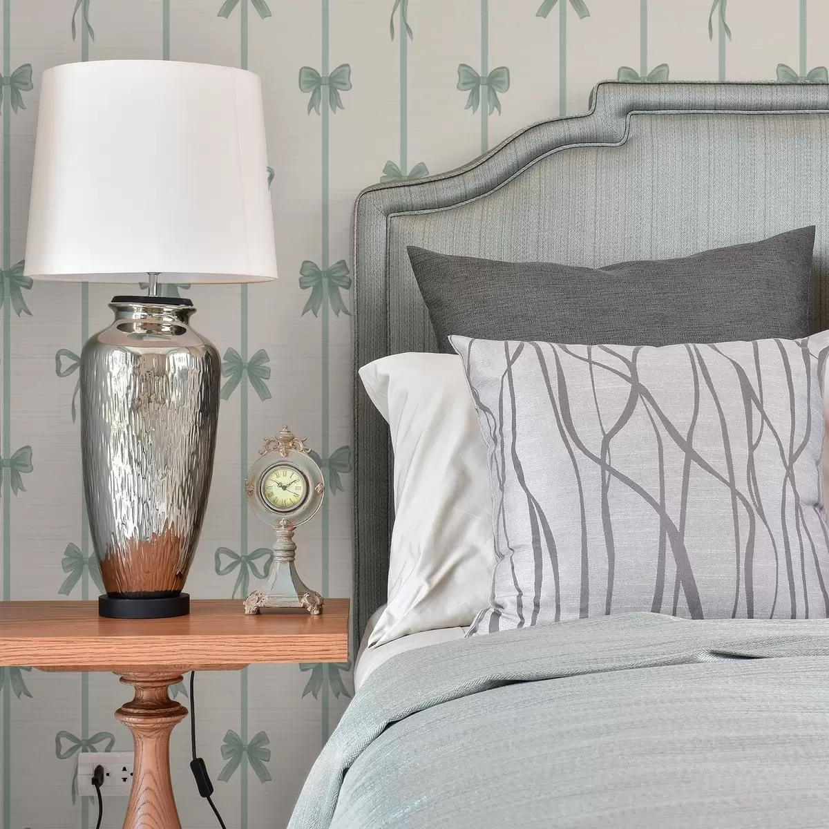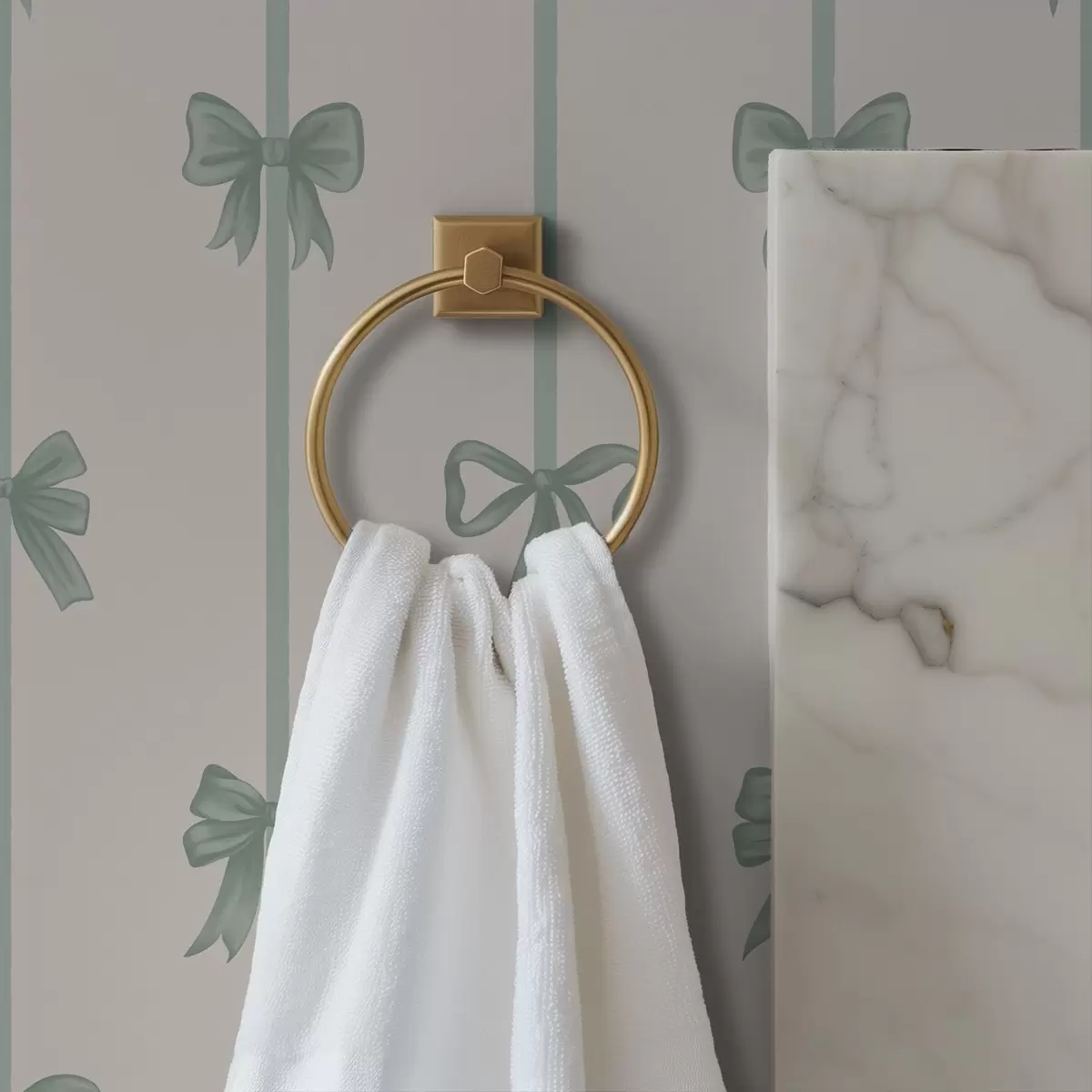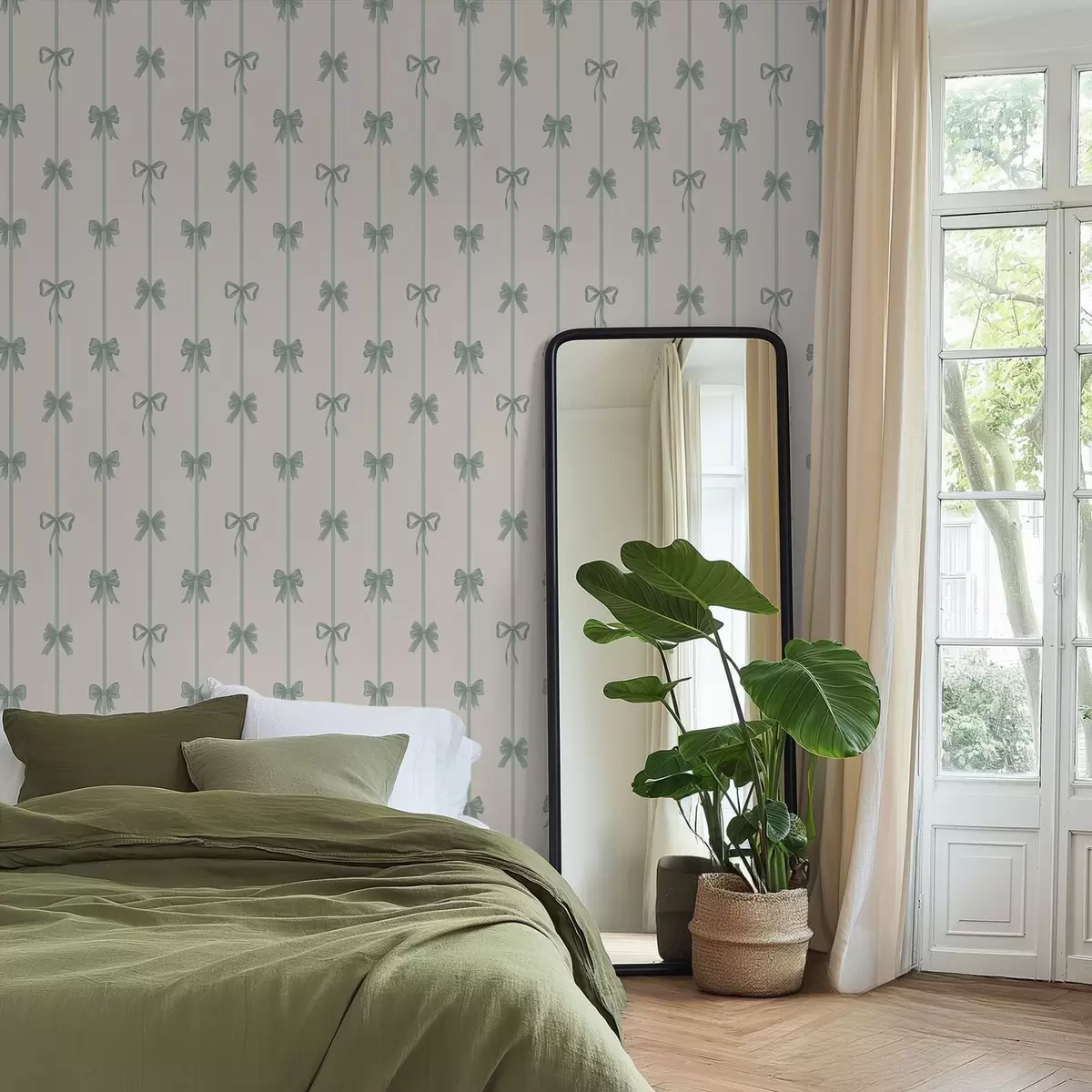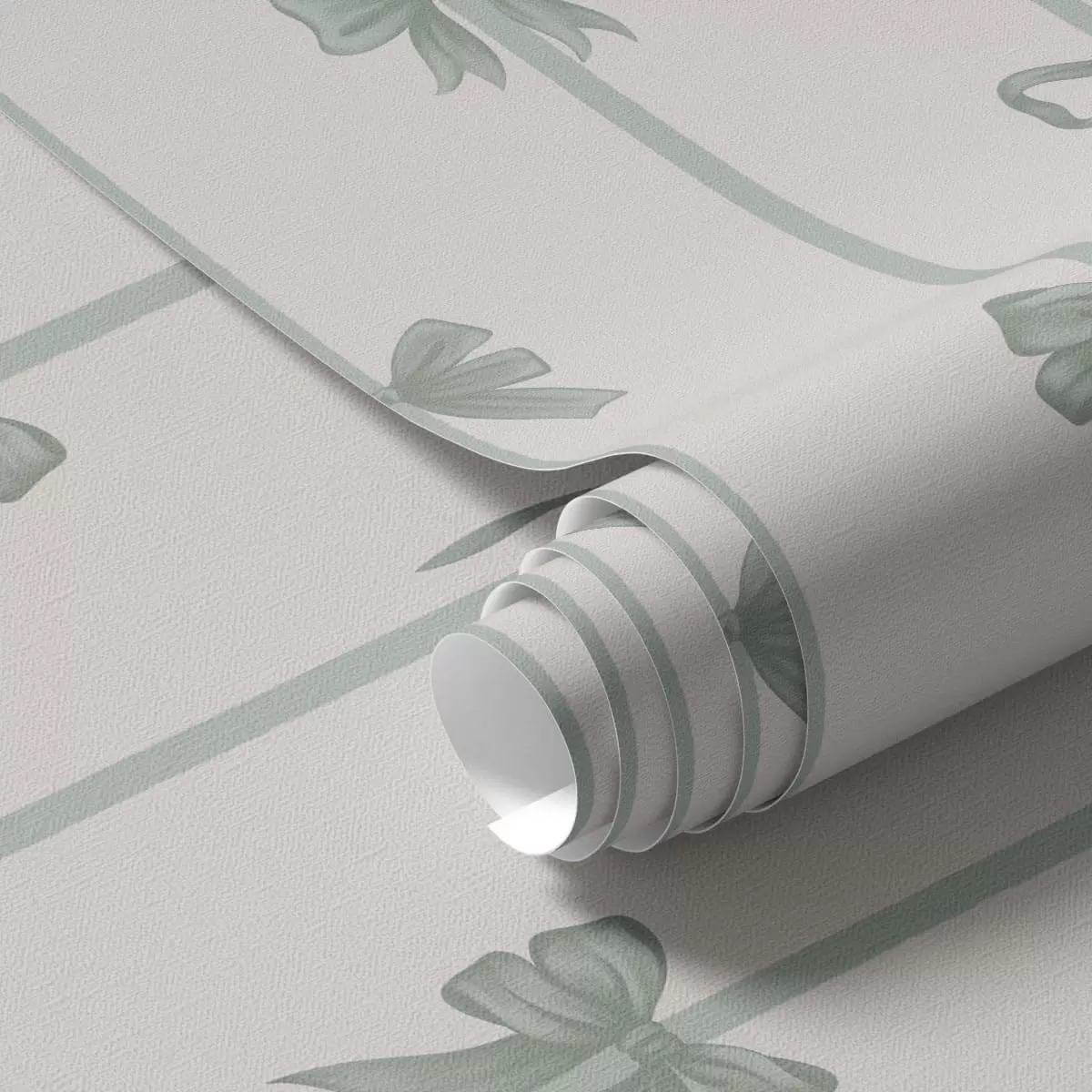 Tapet Gröna rosetter med band på beige bakgrund Nr. a01074v1