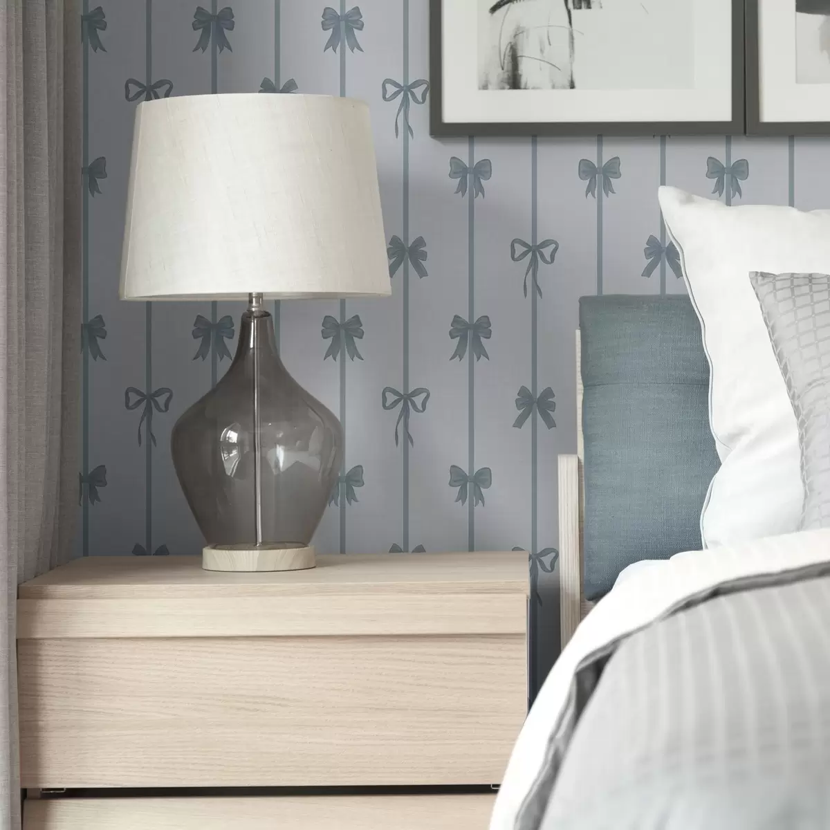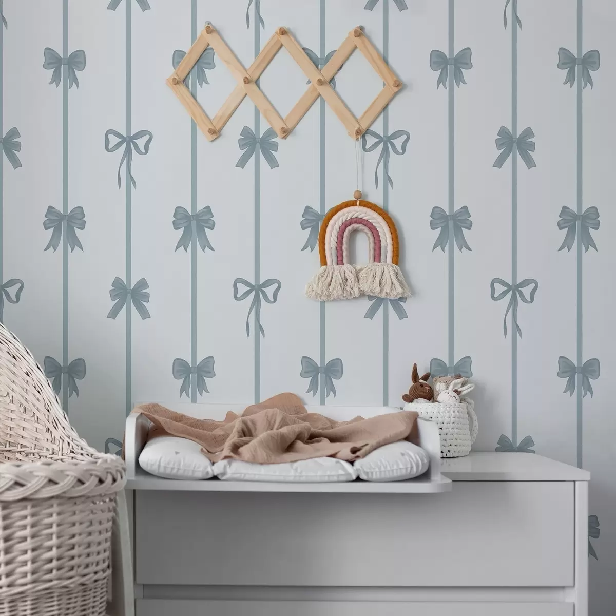 Tapet Blå rosetter med band på ljus bakgrund Nr. a01074v2