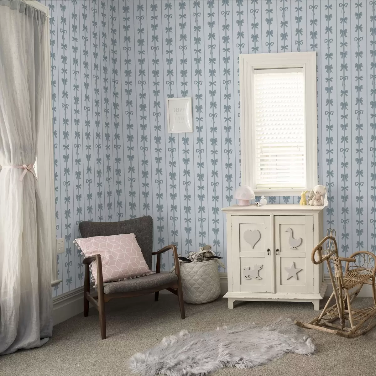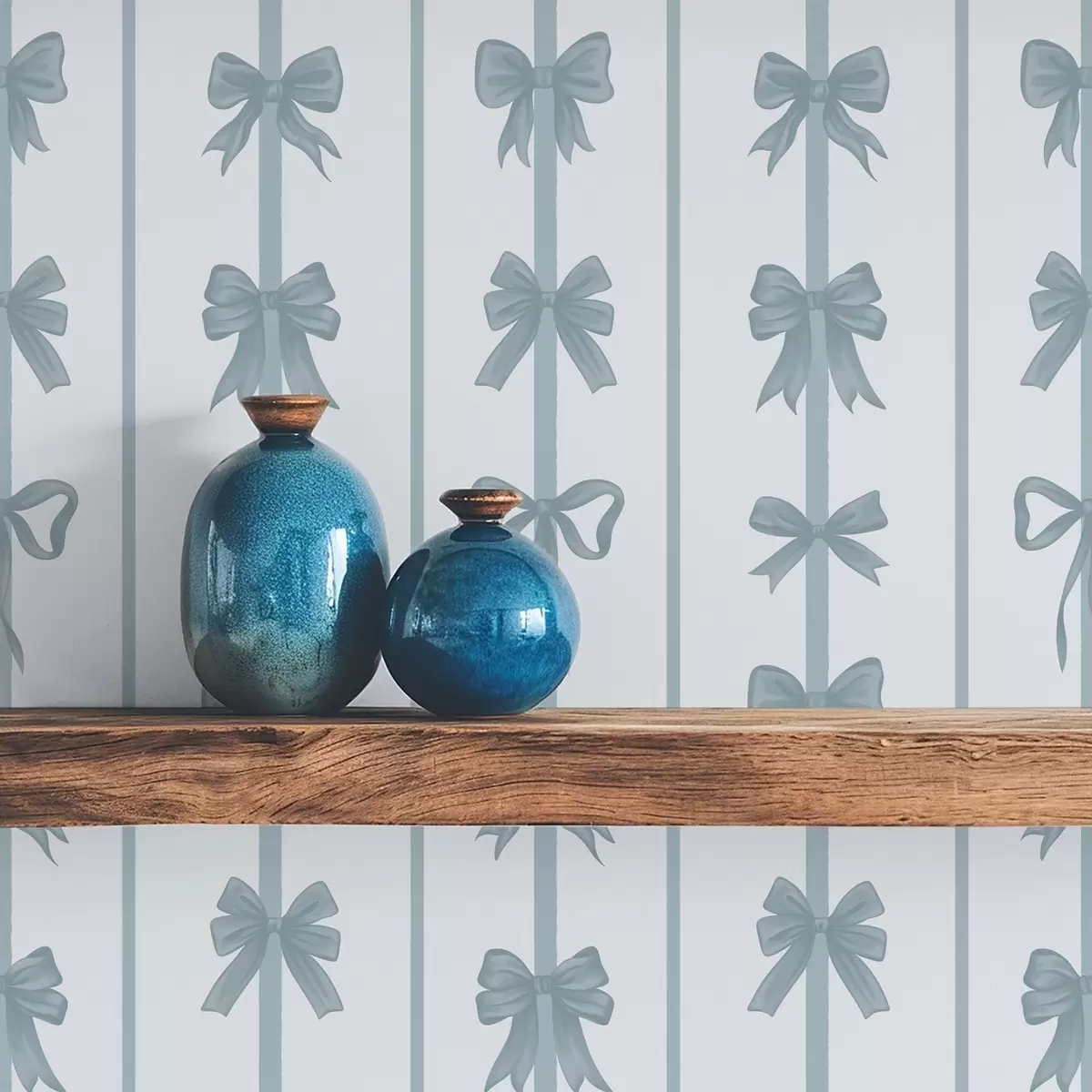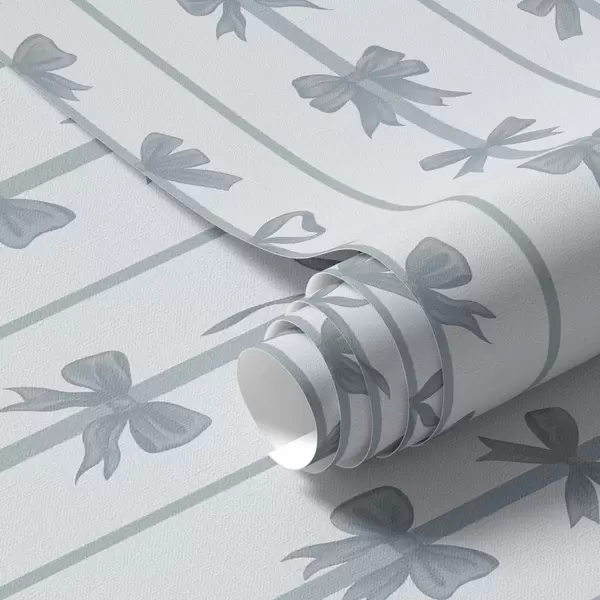 Tapet Blåa rosetter i ränder på ljus bakgrund Nr. a01075v2