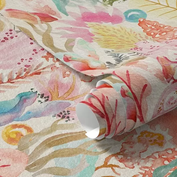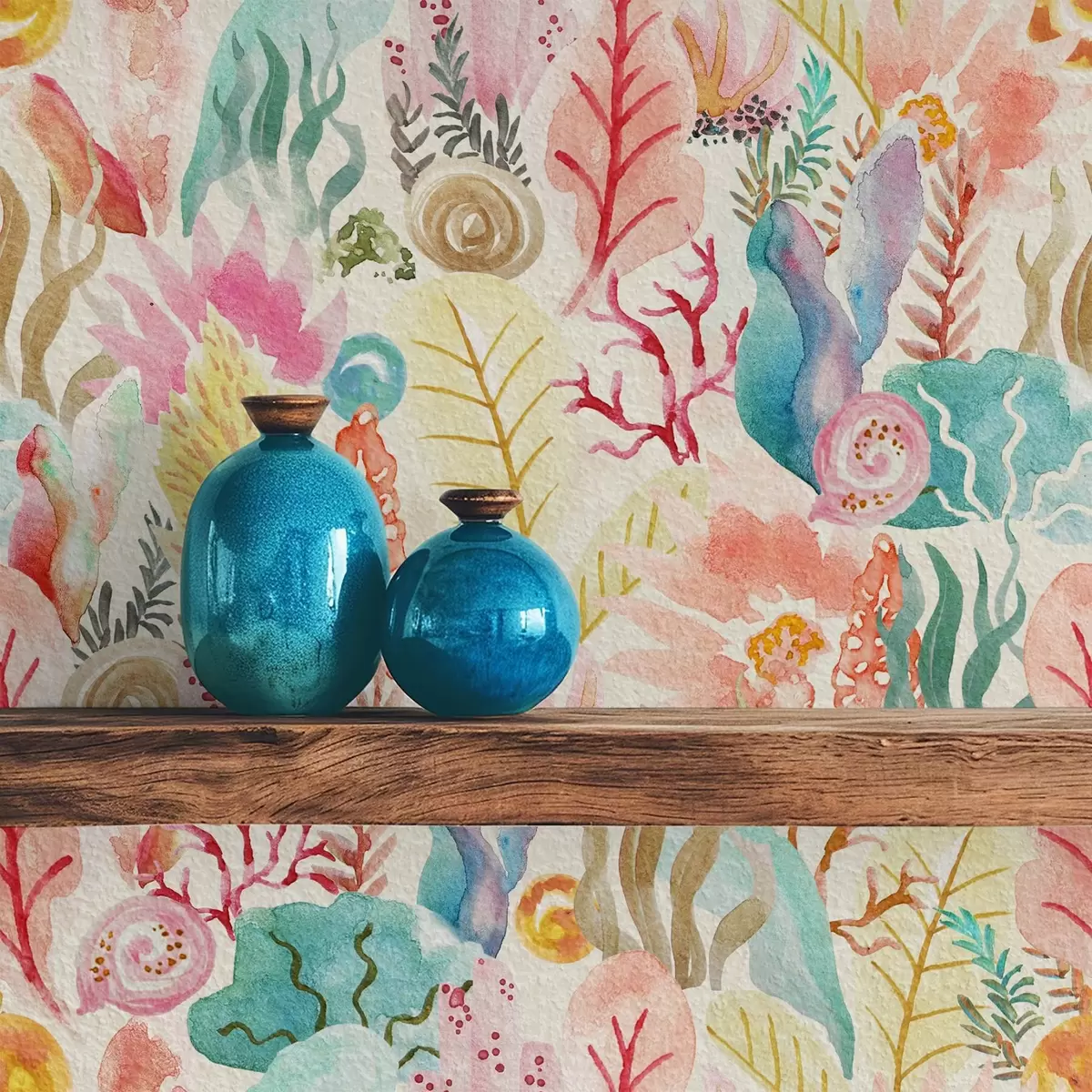 Tapet Akvarellmålning av undervattens trädgård med koraller och tång Nr. a01083
