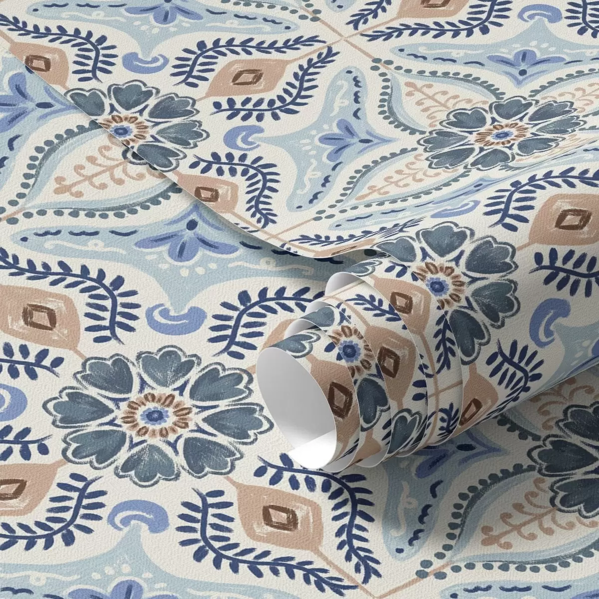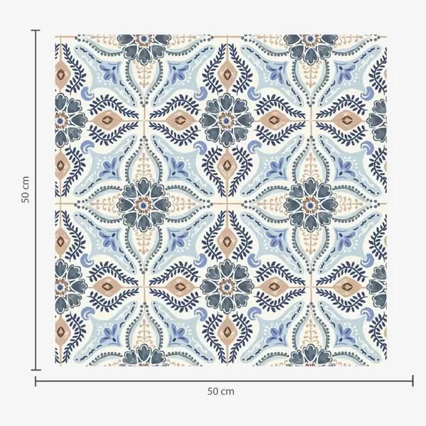 Tapet Blåbeige kakelstil ornament målad i akvarell Nr. a01085