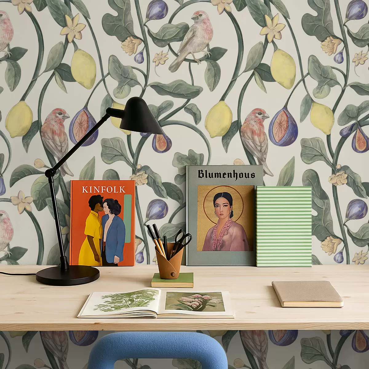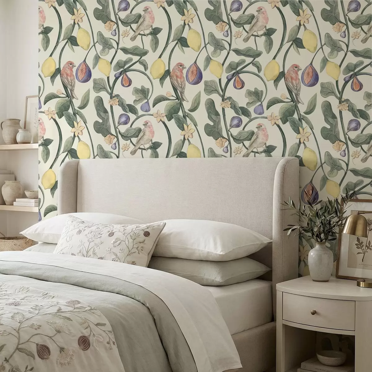 Tapet Fåglar bland löv och frukter Nr. a01107