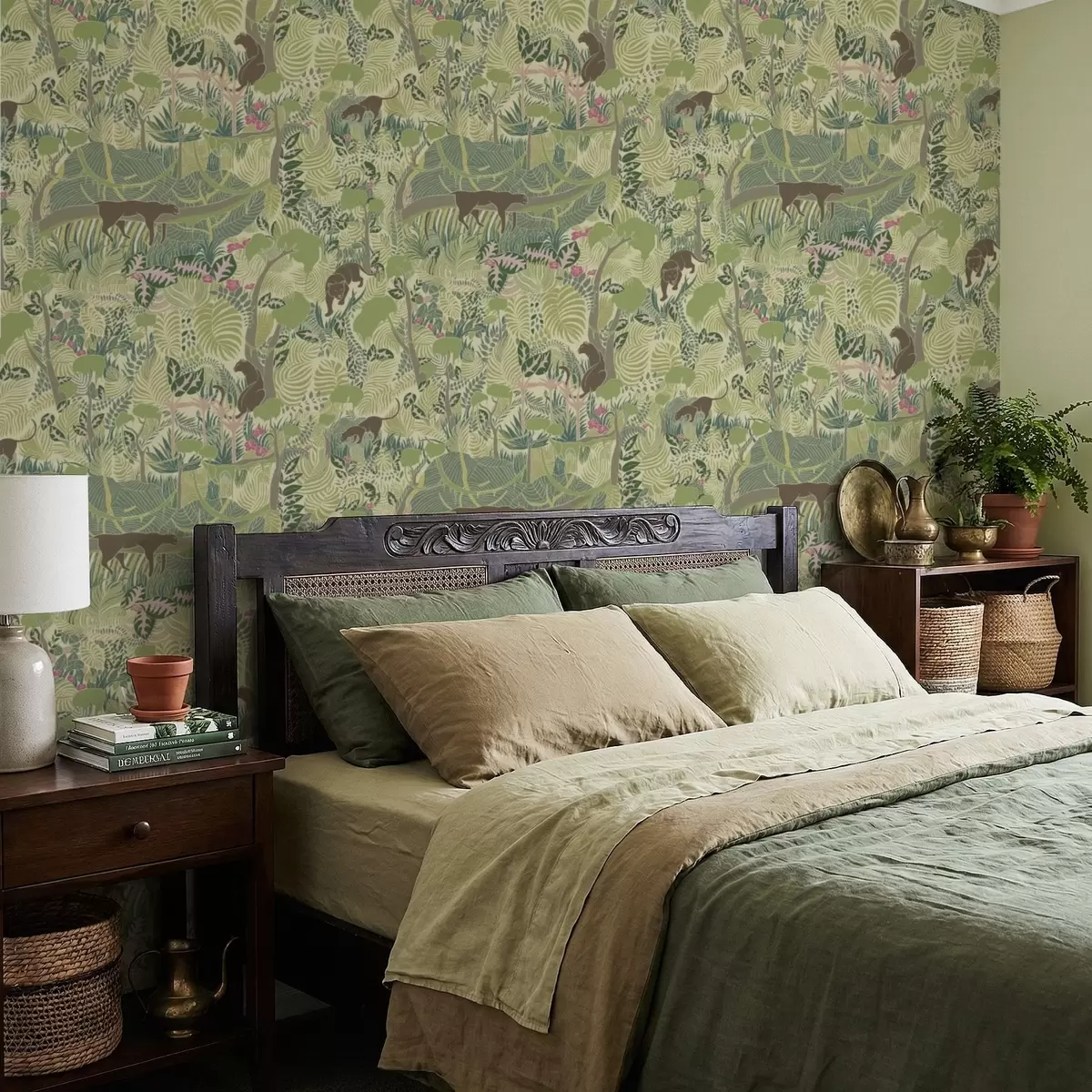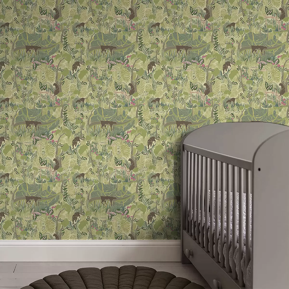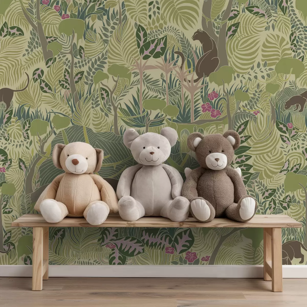 Tapet Skogsscen med djur och tät lövverk Nr. a01108