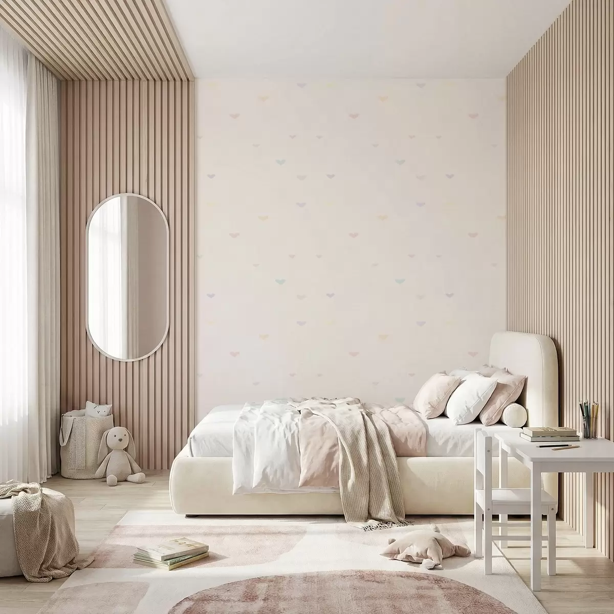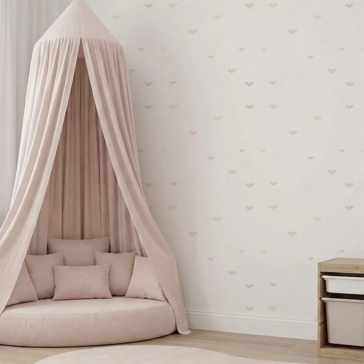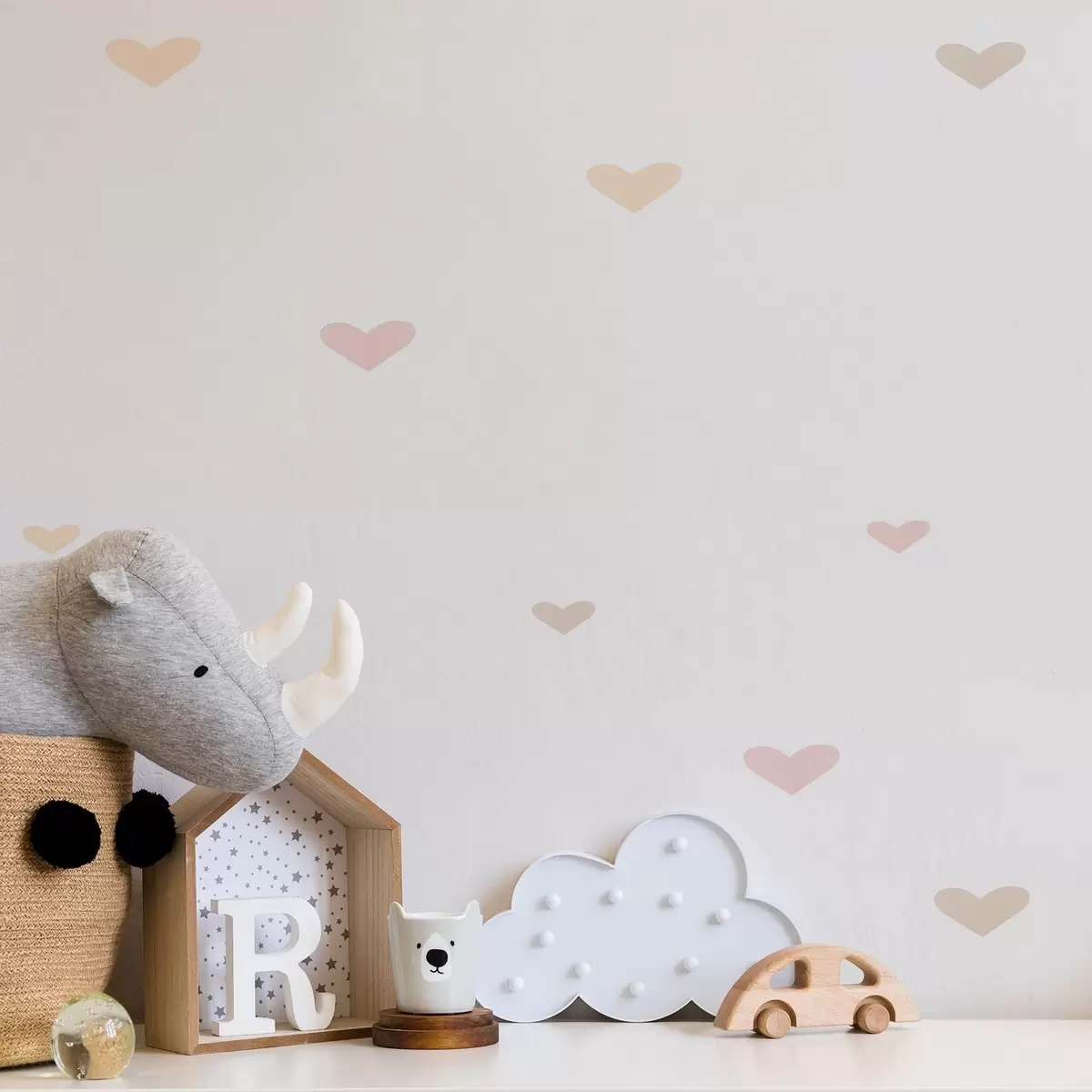 Tapet Spridda pastellfärgade hjärtan på ljus bakgrund Nr. a01110