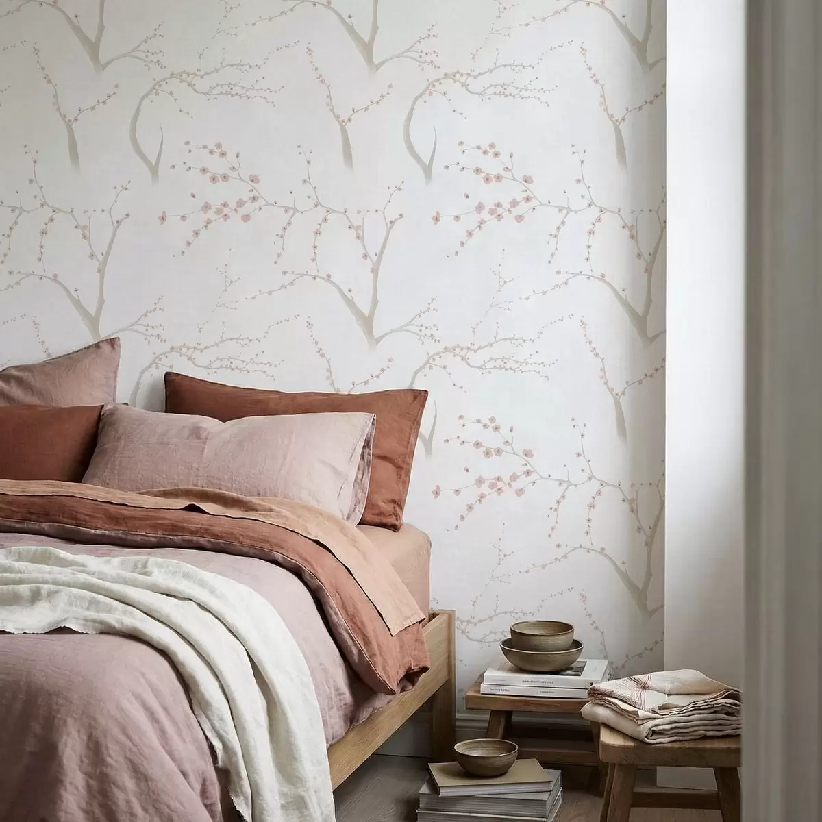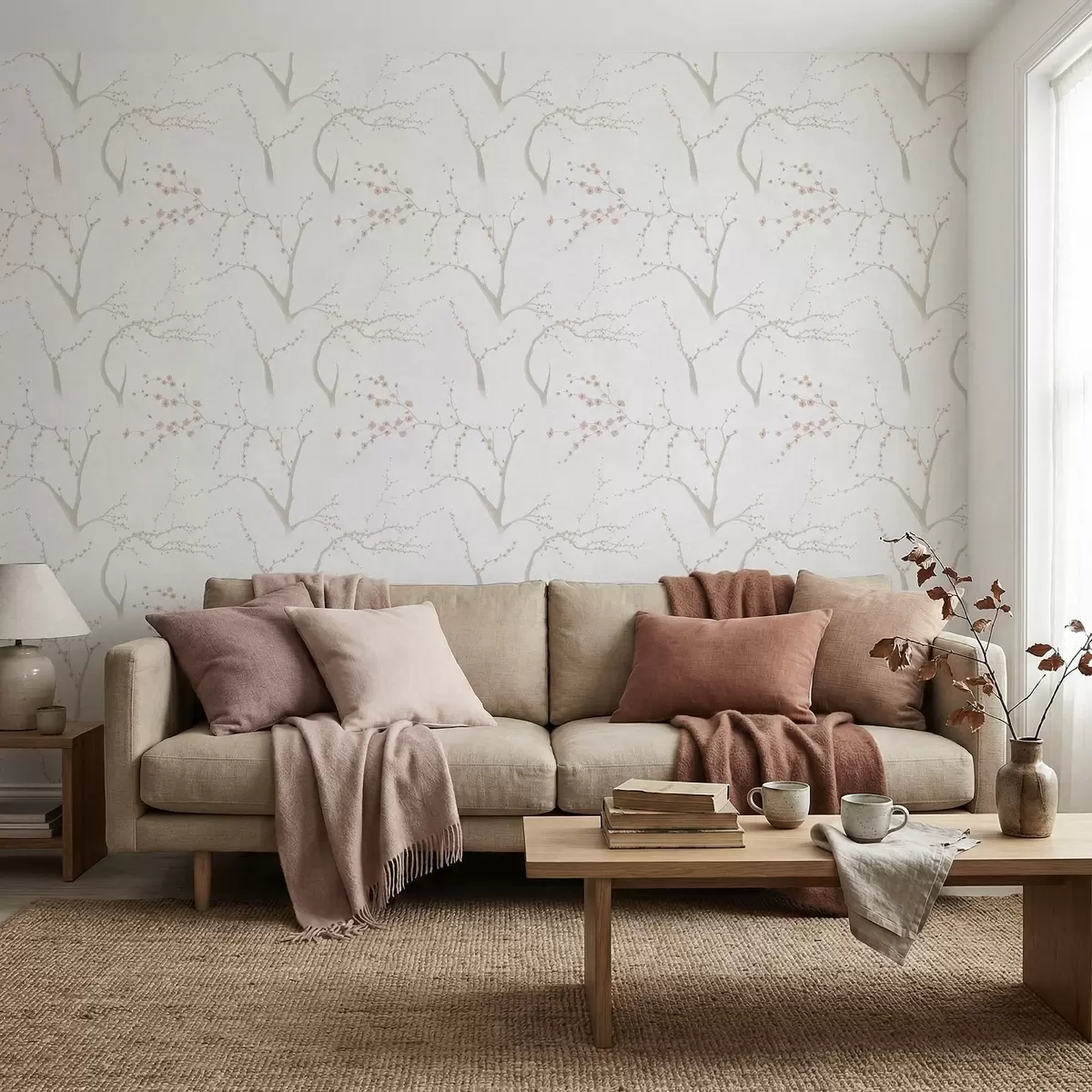 Tapet Lätta grenar med rosa blommor Nr. a01111v1