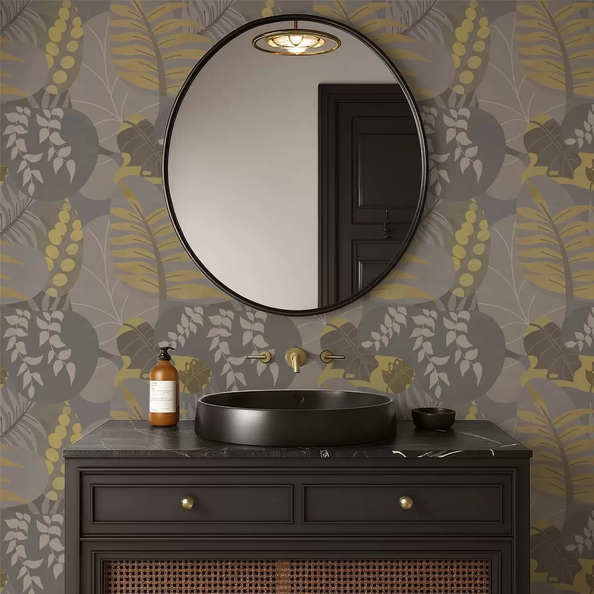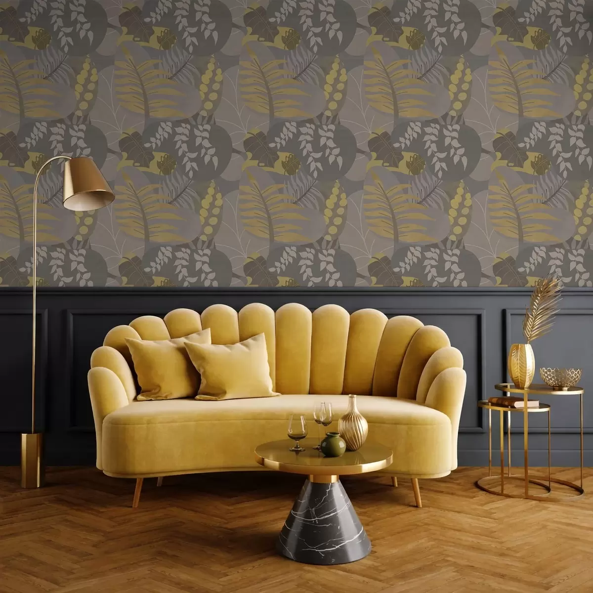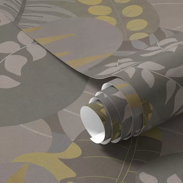 Tapet Abstrakta blad i grå och gula toner Nr. a01112