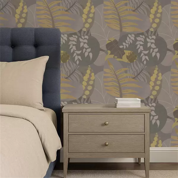 Tapet Abstrakta blad i grå och gula toner Nr. a01112