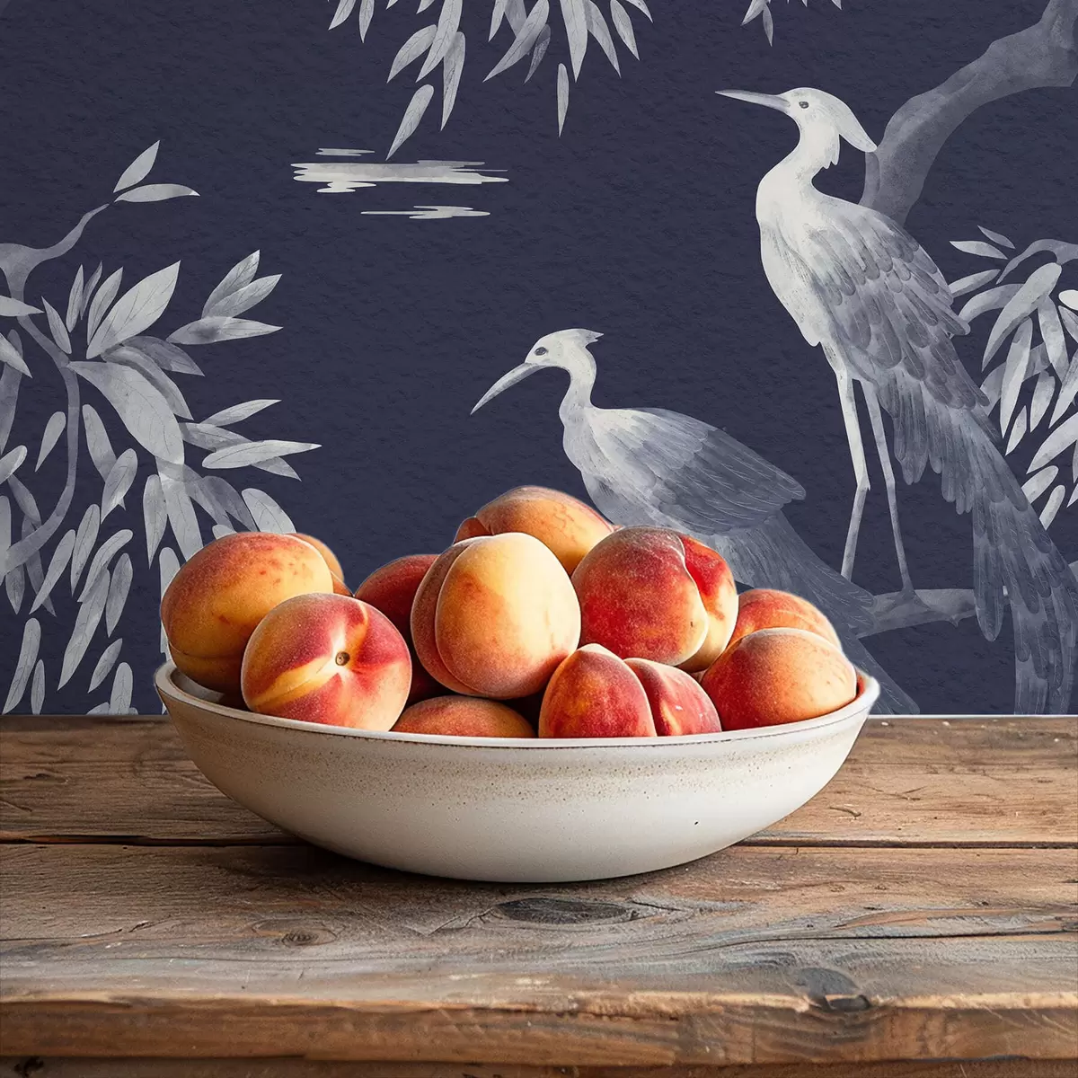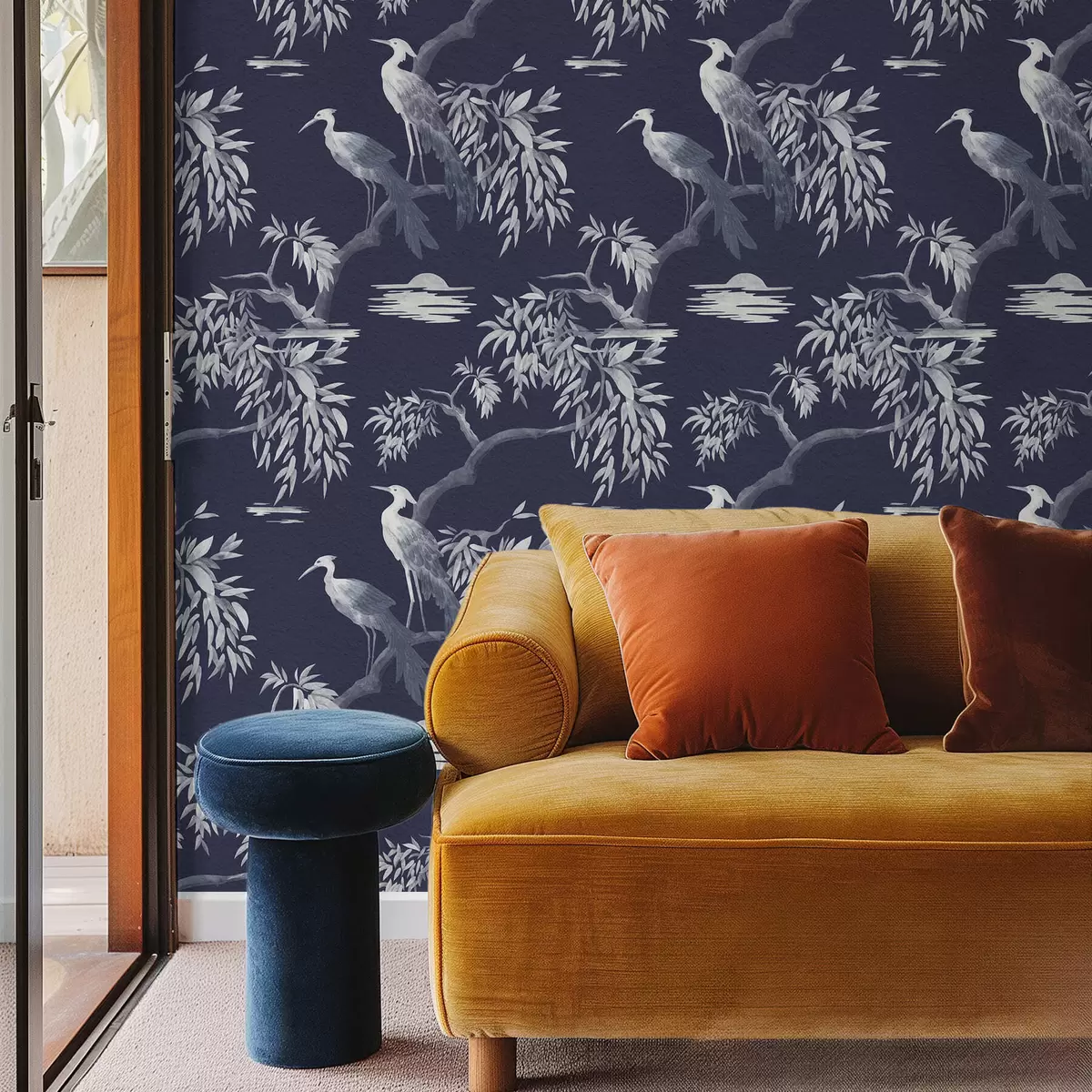 Tapet Fåglar på gren mot mörkblå bakgrund Nr. a01116v1