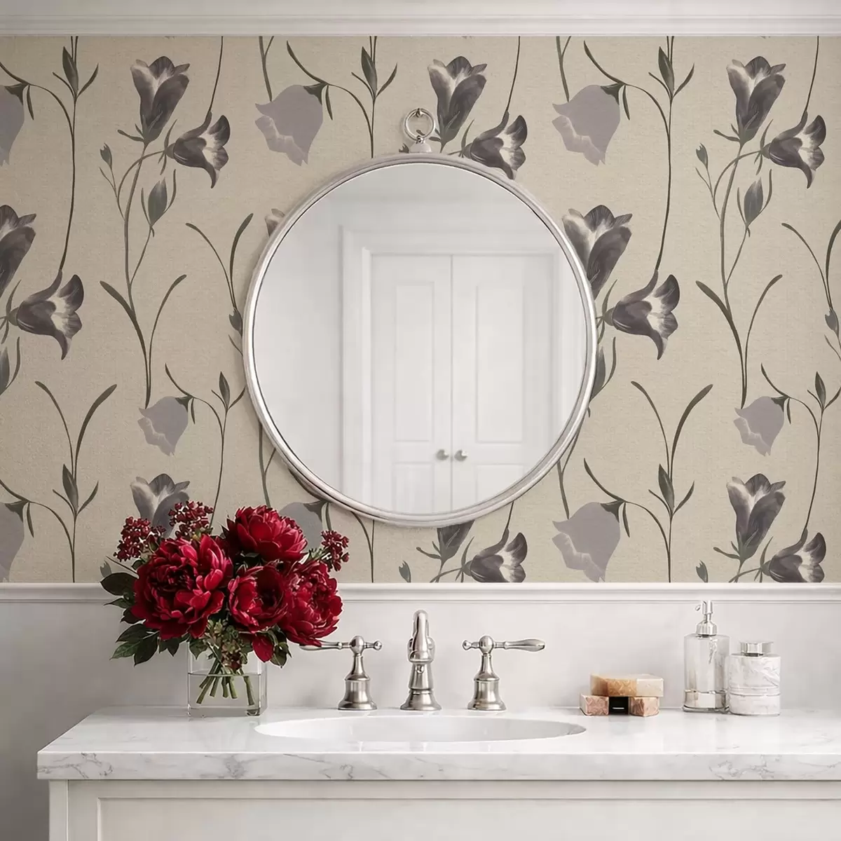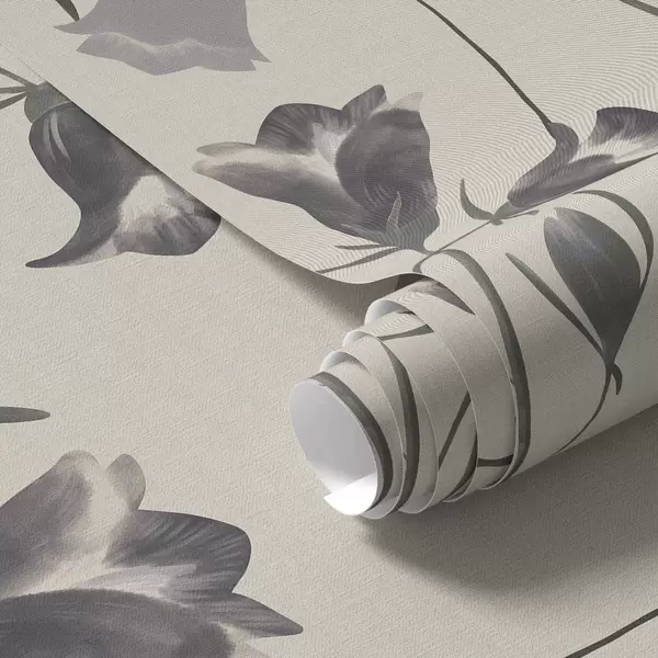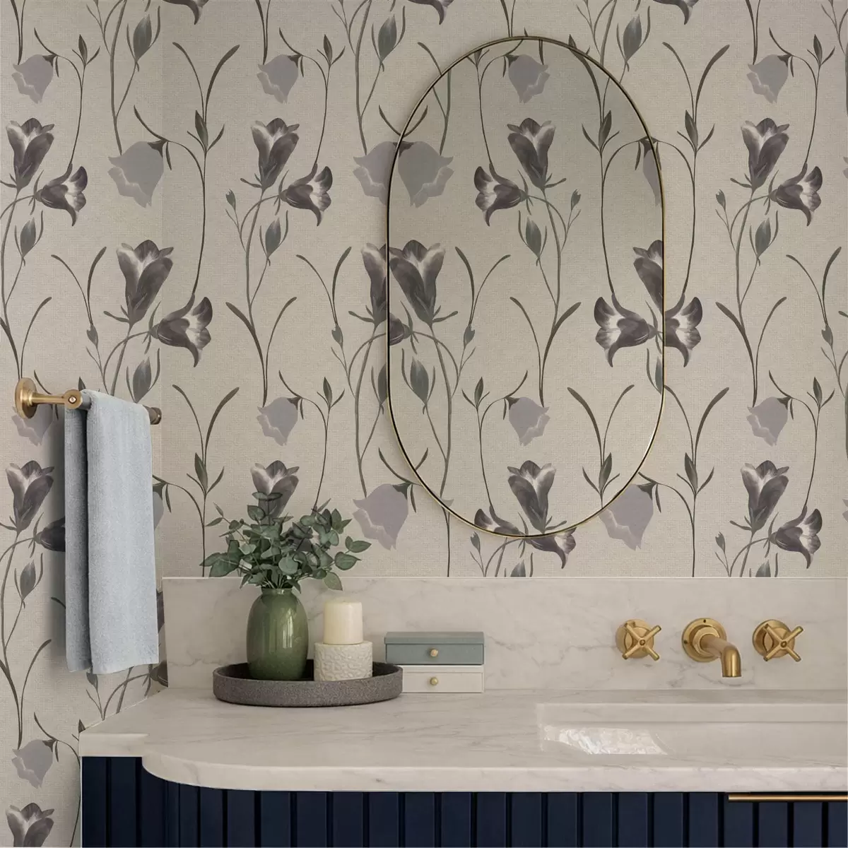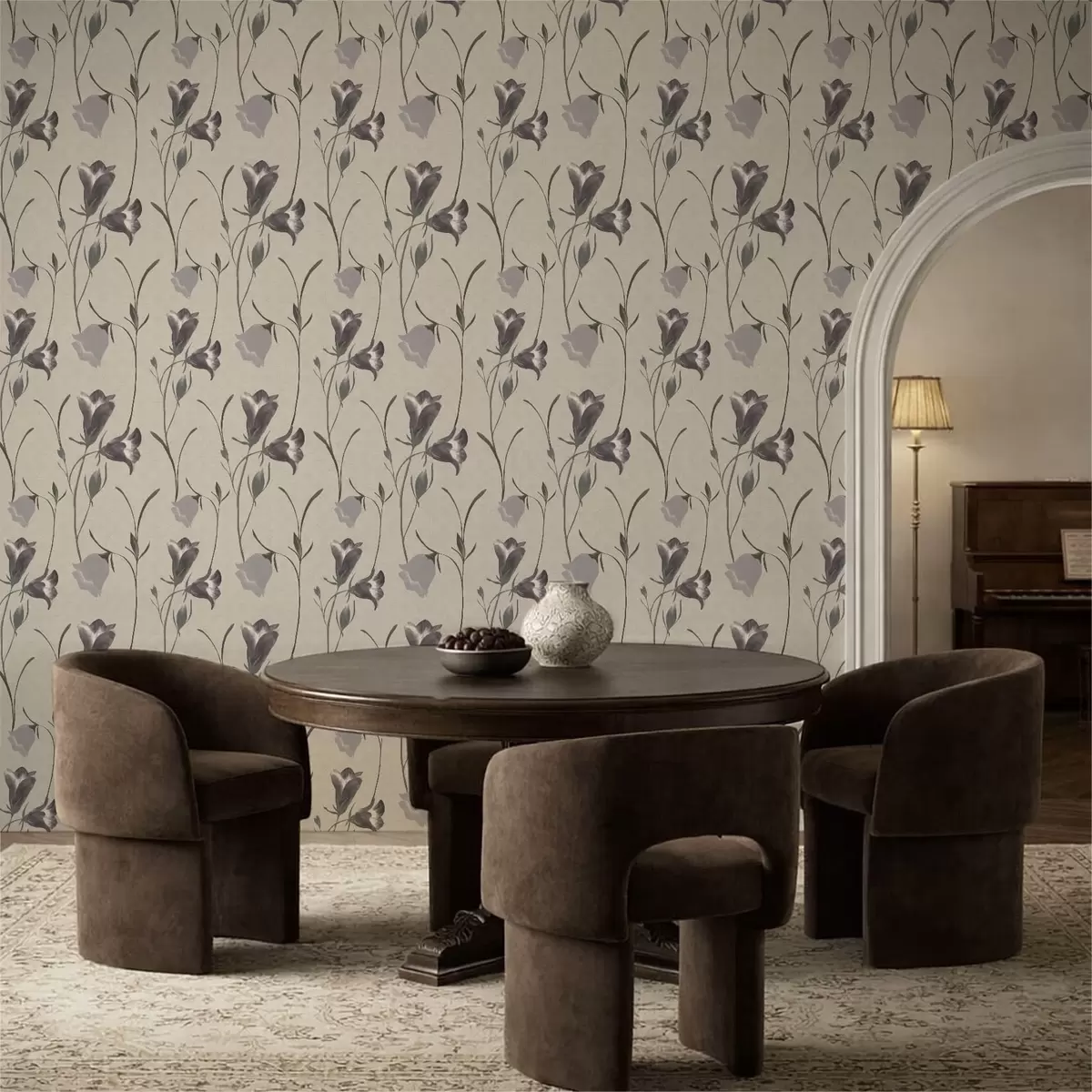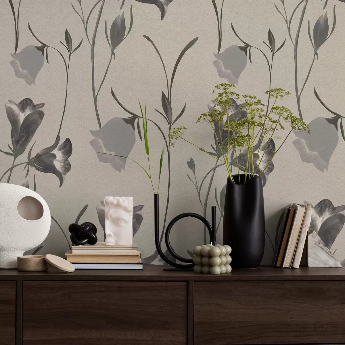 Tapet Grå klockblommor på ljusbeige bakgrund Nr. a01119