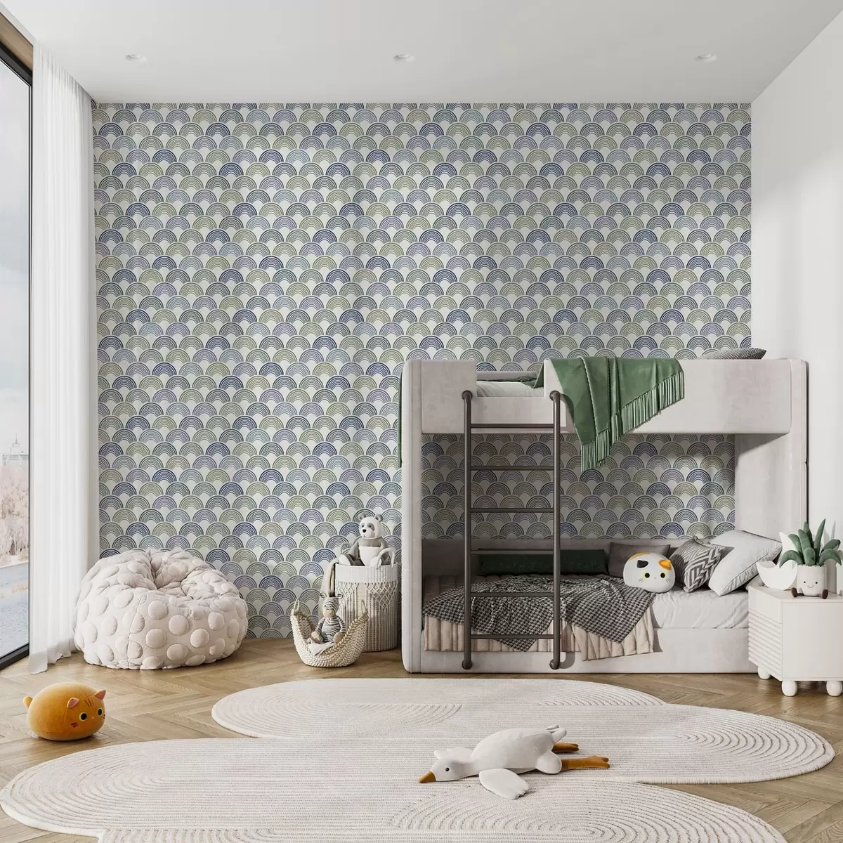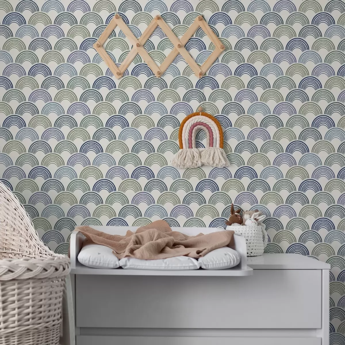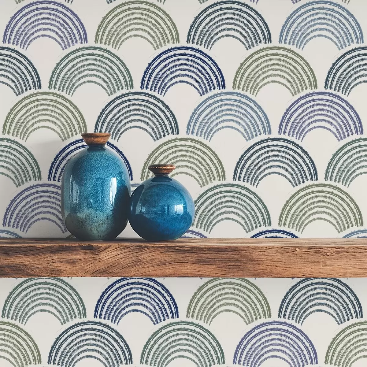 Tapet Blå och gröna bågar i ett repetitivt mönster Nr. a01164v2