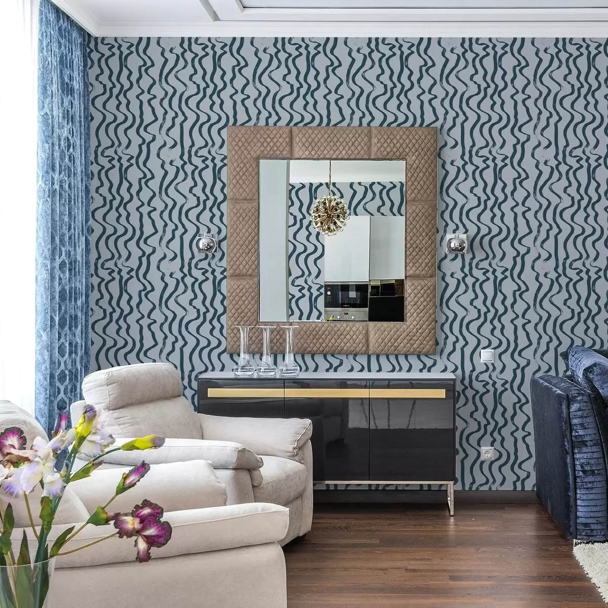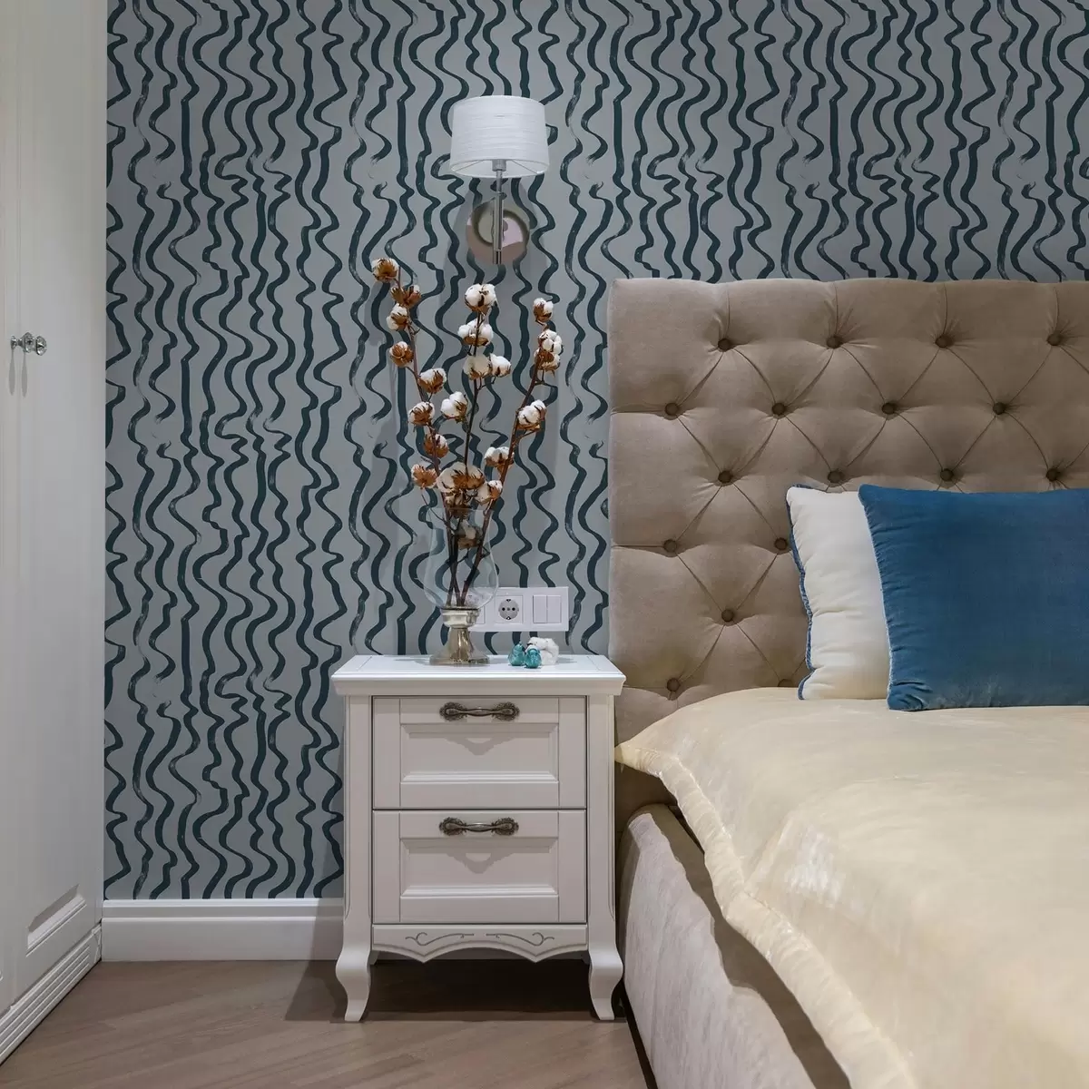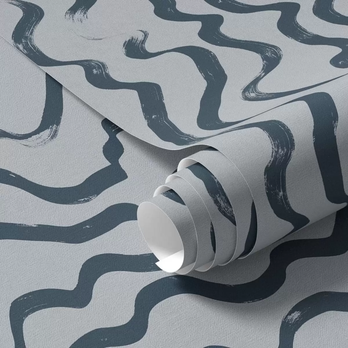 Tapet Mörka vågiga linjer på blå bakgrund Nr. a01168v1