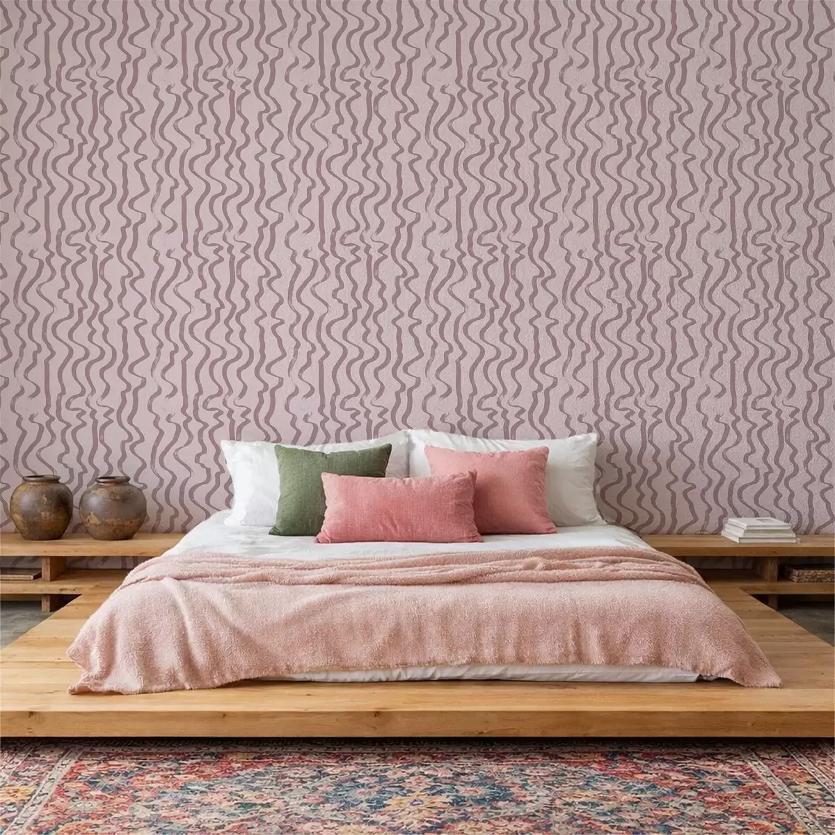 Tapet Rosa vågiga linjer på ljus bakgrund Nr. a01168v3