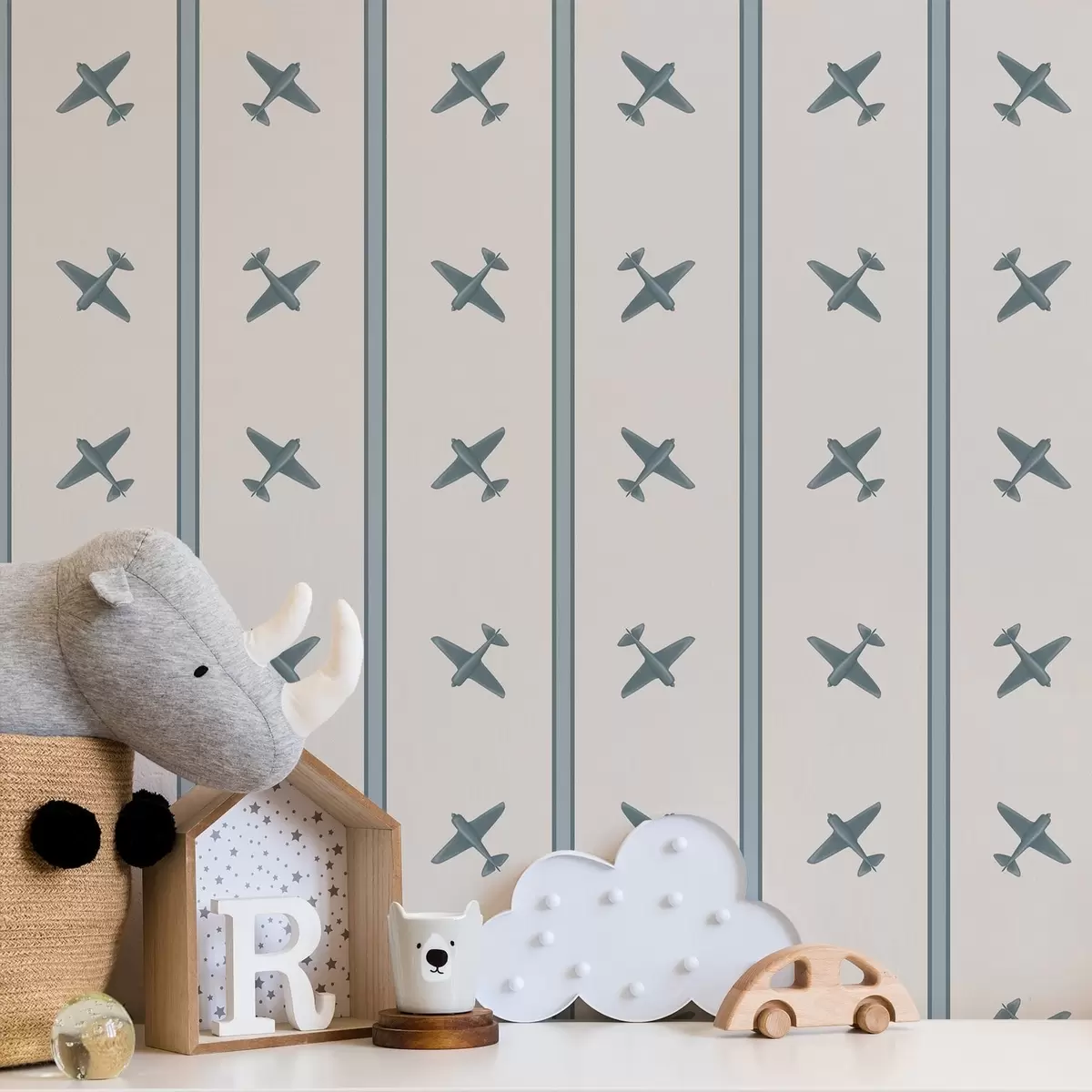 Tapet Flygplan med randigt mönster med blå ränder Nr. a01170
