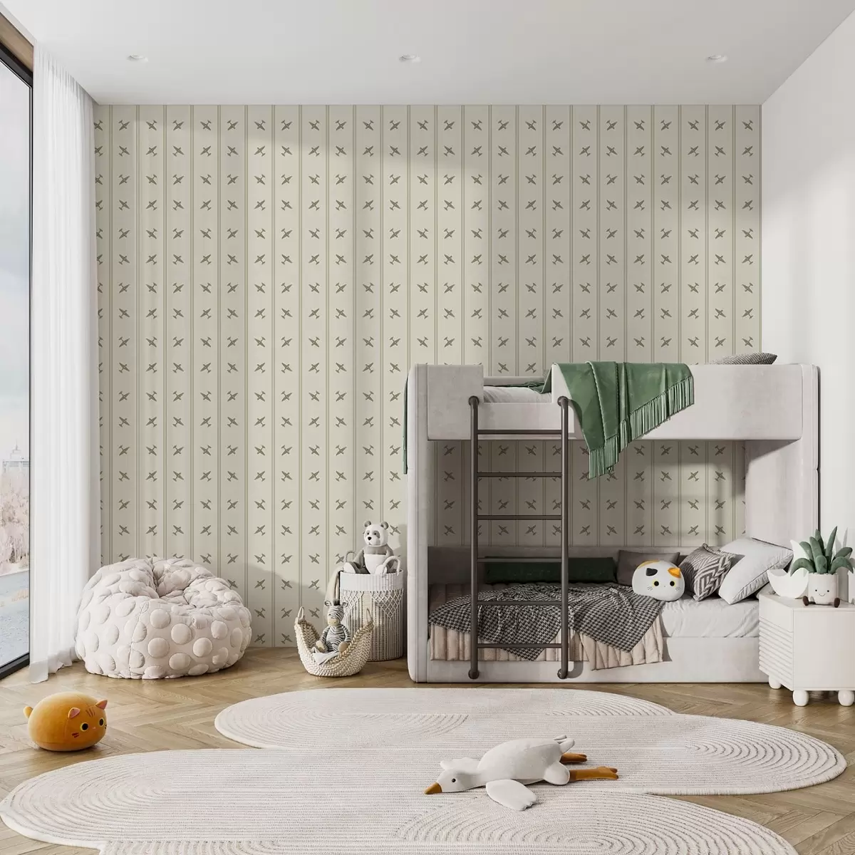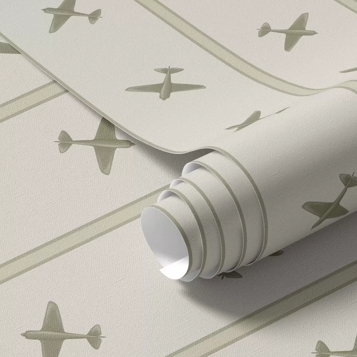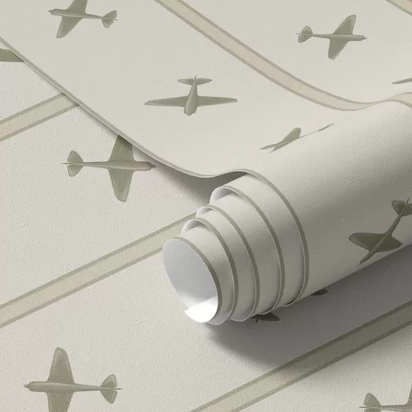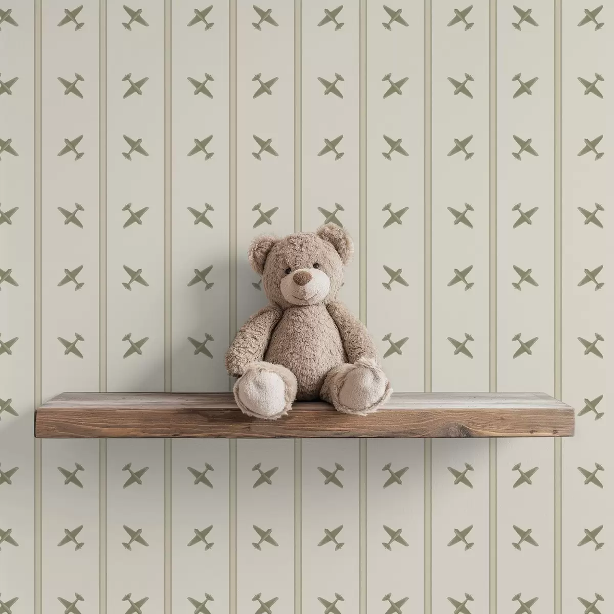 Tapet Flygplan i randigt mönster i olivgröna nyanser Nr. a01170v2