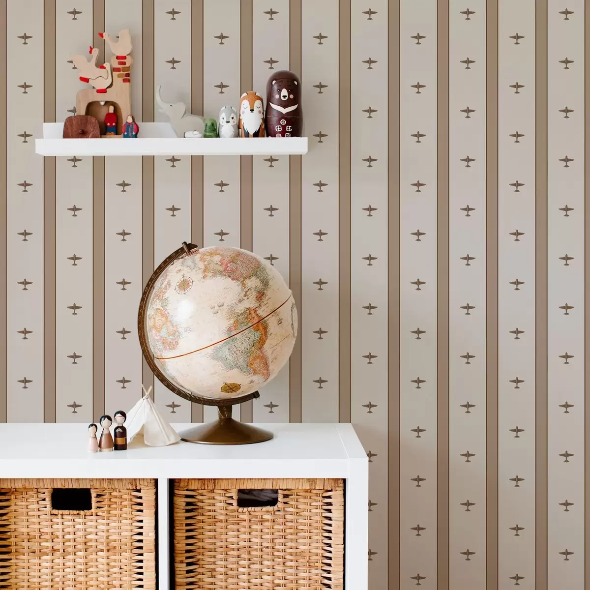 Tapet Små flygplan med ränder på brun bakgrund Nr. a01171v2