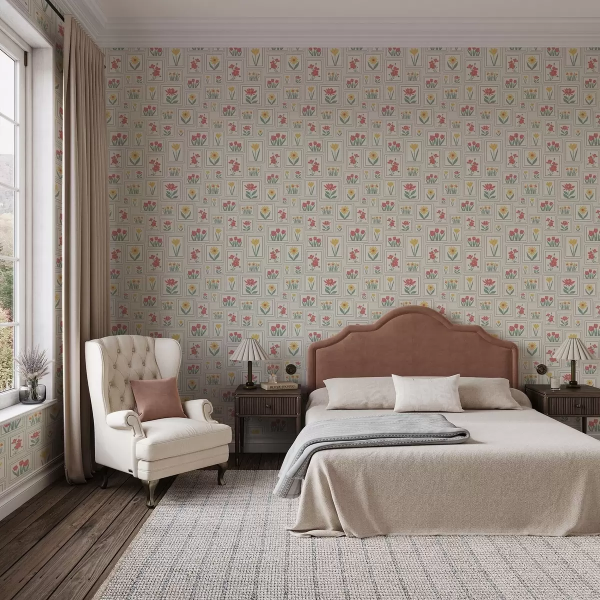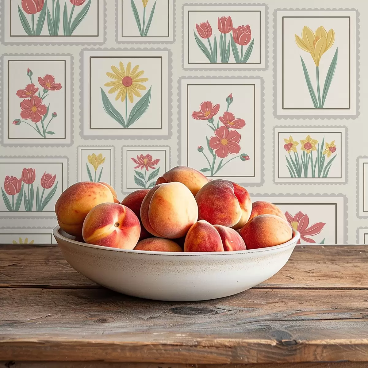 Tapet Inramade blomsterillustrationer på ljus bakgrund Nr. a01173v1